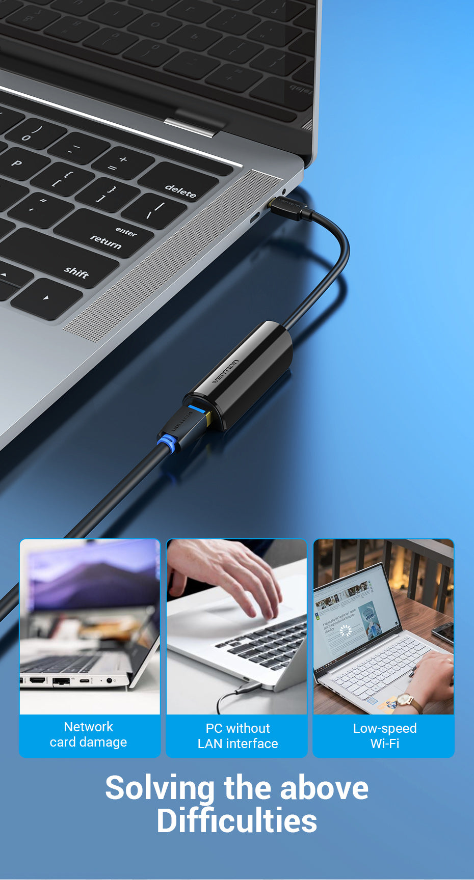 • Tên tiếng Việt: Cáp chuyển Type C sang cổng Mạng RJ45 Vention USB-C to 100M Ethernet Adapter - CFA (100Mbps, Plug & Play)