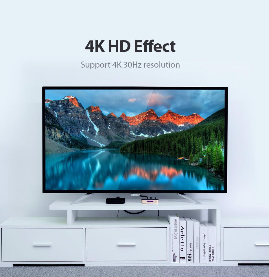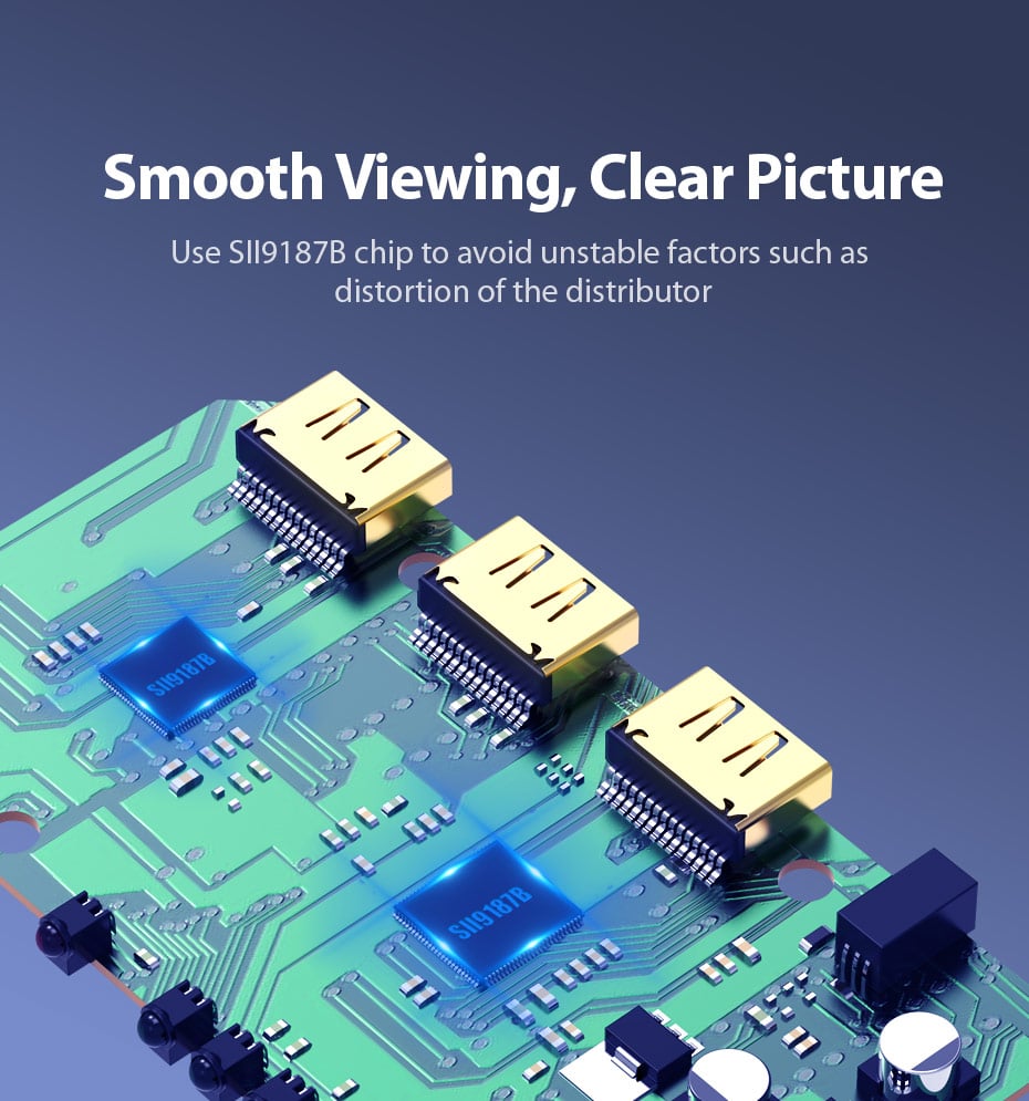 Bộ chia HDMI này hỗ trợ độ phân giải 4K@30Hz, mang đến hình ảnh sắc nét, rõ ràng và chi tiết. Bạn có thể tận hưởng các nội dung đa phương tiện với chất lượng cao và trải nghiệm hình ảnh tuyệt vời.