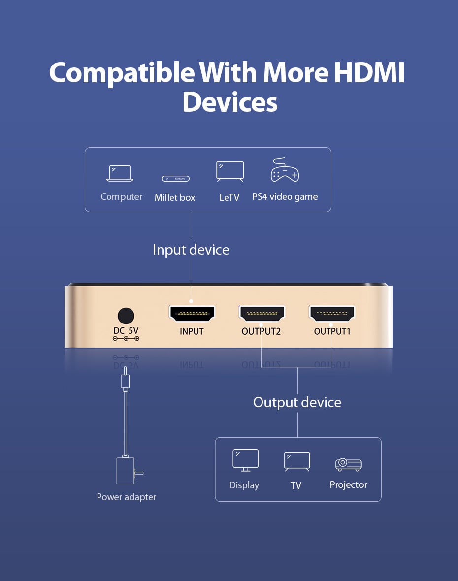 Với kiểu dáng nhỏ gọn, bộ chia HDMI này dễ dàng lắp đặt và sử dụng. Bạn có thể đặt nó trên bàn làm việc, gắn vào tường hoặc mang theo khi di chuyển. Điều này giúp bạn tiết kiệm không gian và tạo sự gọn gàng cho hệ thống giải trí của bạn.