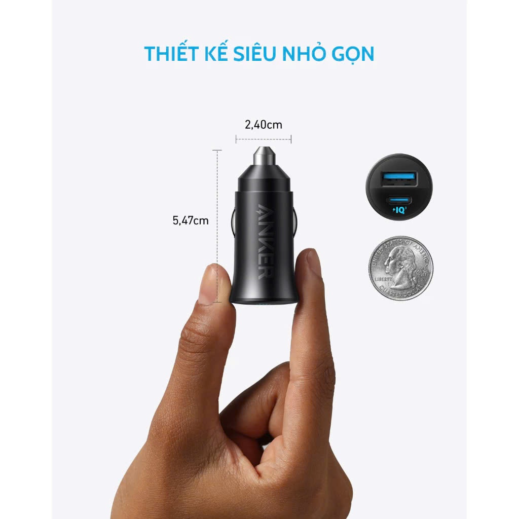Tẩu sạc ô tô Anker A2741 là phụ kiện không thể thiếu cho những ai di chuyển thường xuyên bằng xe hơi, giúp bạn luôn đảm bảo các thiết bị di động (smartphone, tablet, phụ kiện Bluetooth…) luôn đầy pin. Với thiết kế siêu nhỏ gọn chỉ 54.7 × 24 × 24 mm nhưng vẫn cung cấp công suất lên đến 30 W, A2741 tích hợp 1 cổng USB-C và 1 cổng USB-A, cho phép sạc nhanh hai thiết bị cùng lúc. Công nghệ MultiProtect™, PD/PPS và Quick Charge 3.0 (QC 3.0), AFC, FCP, SCP được trang bị sẵn, đảm bảo sạc nhanh và an toàn tối ưu trong suốt hành trình