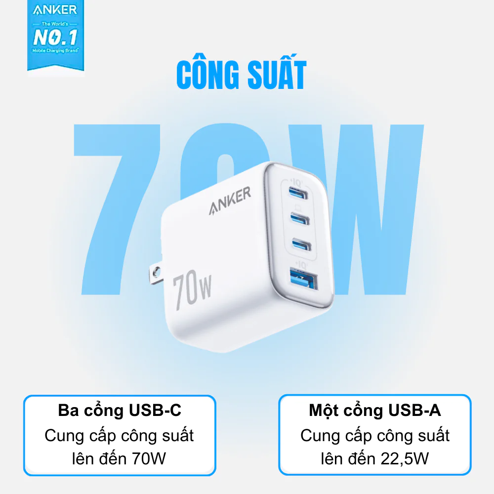 Hãy tưởng tượng bạn chỉ cần một củ sạc duy nhất cho tất cả các thiết bị công nghệ của mình, từ laptop, máy tính bảng, điện thoại cho đến tai nghe. Anker A121C 70W chính là hiện thực hóa của ý tưởng đó. Tích hợp công nghệ GaN tiên tiến và sức mạnh sạc thông minh, đây là giải pháp năng lượng tối ưu cho người dùng hiện đại, giúp không gian làm việc và hành lý của bạn trở nên gọn gàng hơn bao giờ hết.