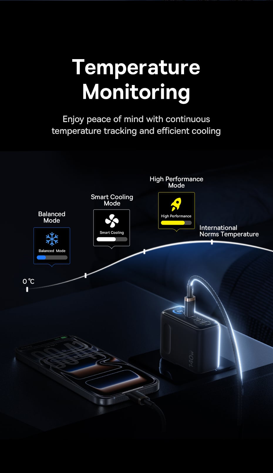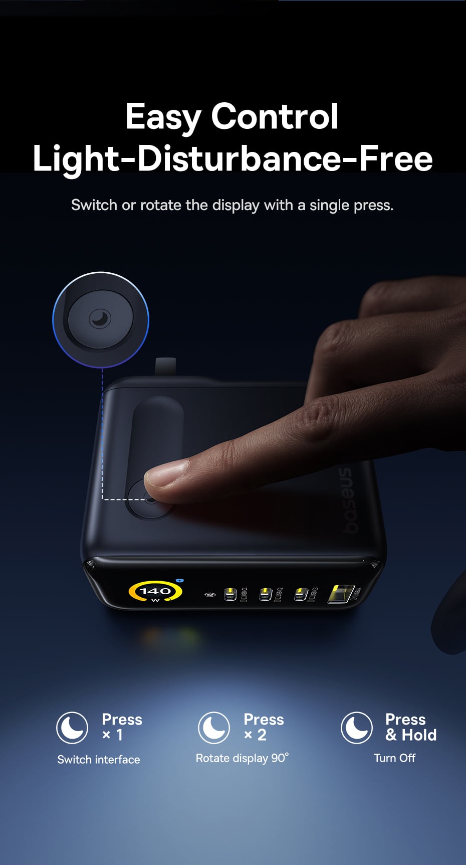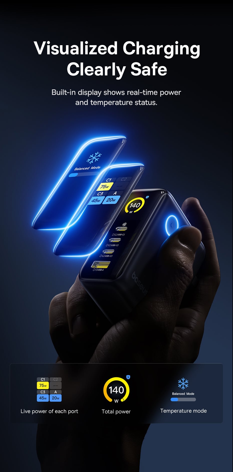 Tính năng Củ Sạc Nhanh Baseus PicoGo AH11 140W (3*Type-C + 1*USB-A port, Digital Display, Includes Dura Fast Charging Cable C to C 240W 1.5m)