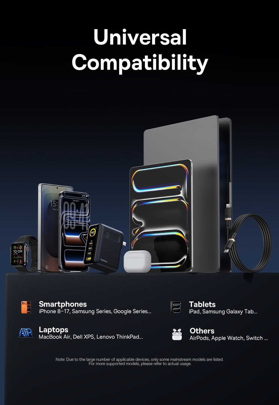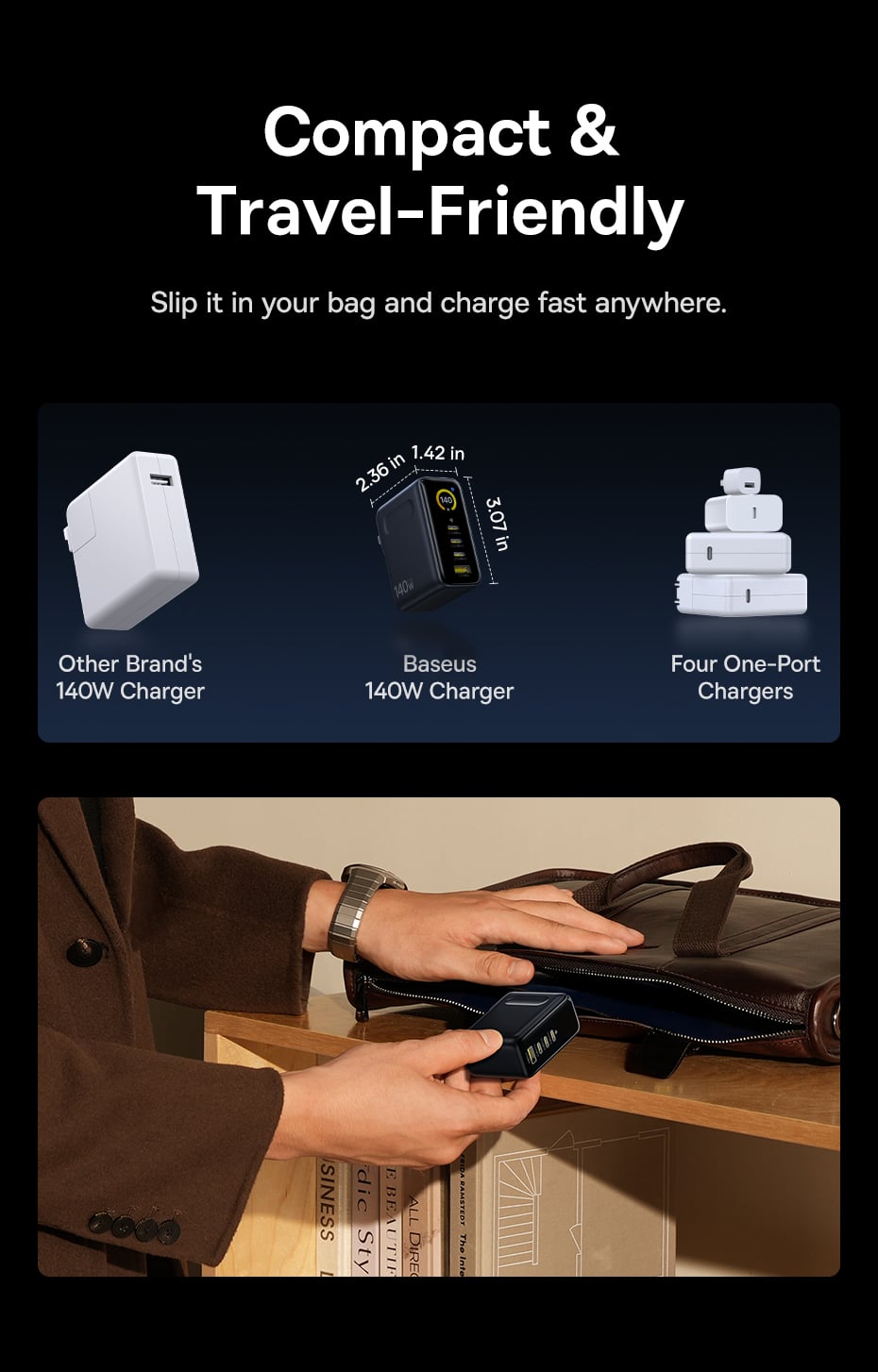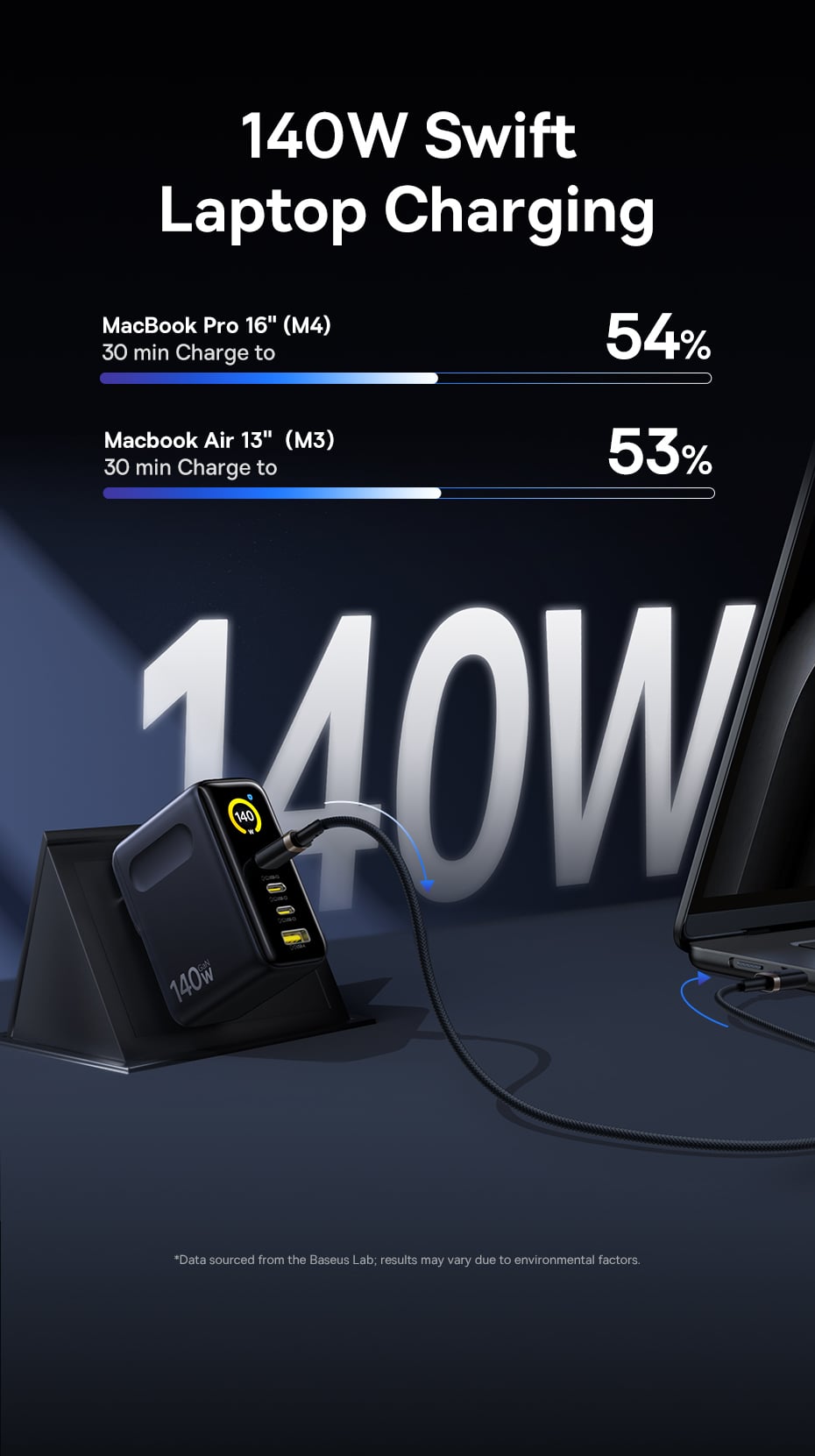 Điểm đáng giá nhất của củ sạc này chính là công suất đầu ra (power output) đạt mức tối đa 140W. Với sức mạnh này, Baseus PicoGo AH11 hoàn toàn có thể sạc nhanh (Fast Charging) cho các dòng laptop đòi hỏi nguồn điện lớn như MacBook Pro 16 inch một cách mượt mà và ổn định, giúp bạn tiết kiệm tối đa thời gian chờ đợi.