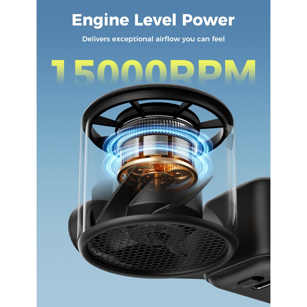 Tính năng Quạt Cầm Tay AECOOLY AirGimbal (3500mAh, 17H, Display Screen, 11m/s, 15000RPM, 220° Adjustable, 5-Speed Turbo Wind)