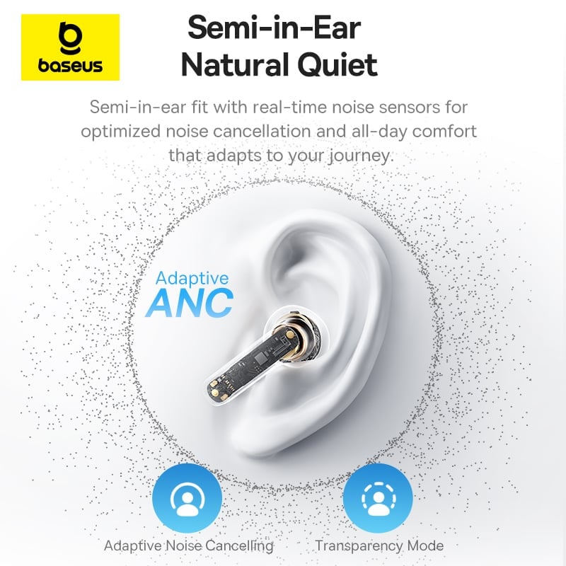 Hình Ảnh Tai Nghe Không Dây TWS Baseus Bass BS1 (Bluetooth v6.0, 7H, Adaptive ANC, IP55, 6-Mics ENC, Smart App Control)