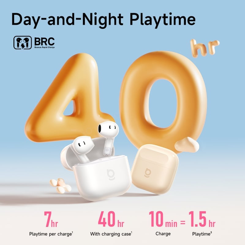 Một lần sạc cho phép nghe nhạc/ gọi lên tới 7 giờ, tổng thời gian với hộp sạc khoảng 40 giờ — phù hợp cho nhu cầu sử dụng nhiều lần trong ngày mà không lo hết pin nhanh.