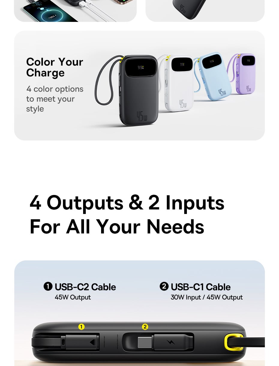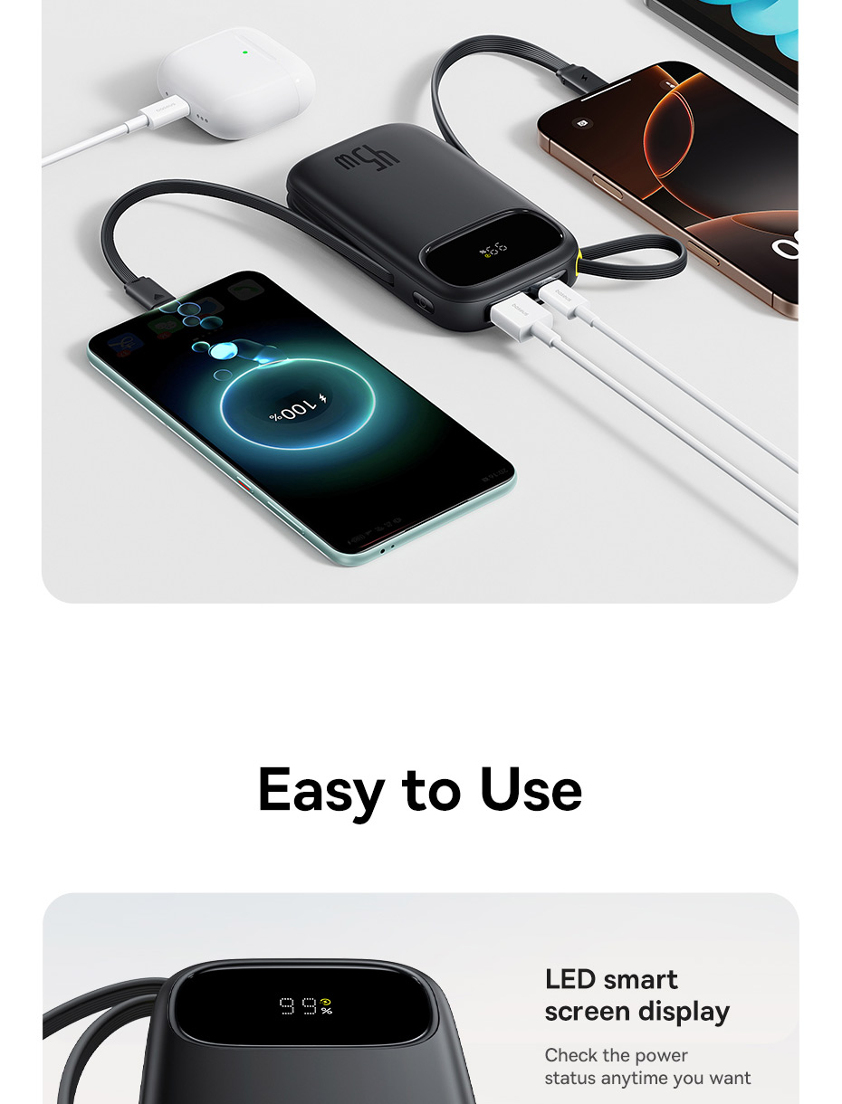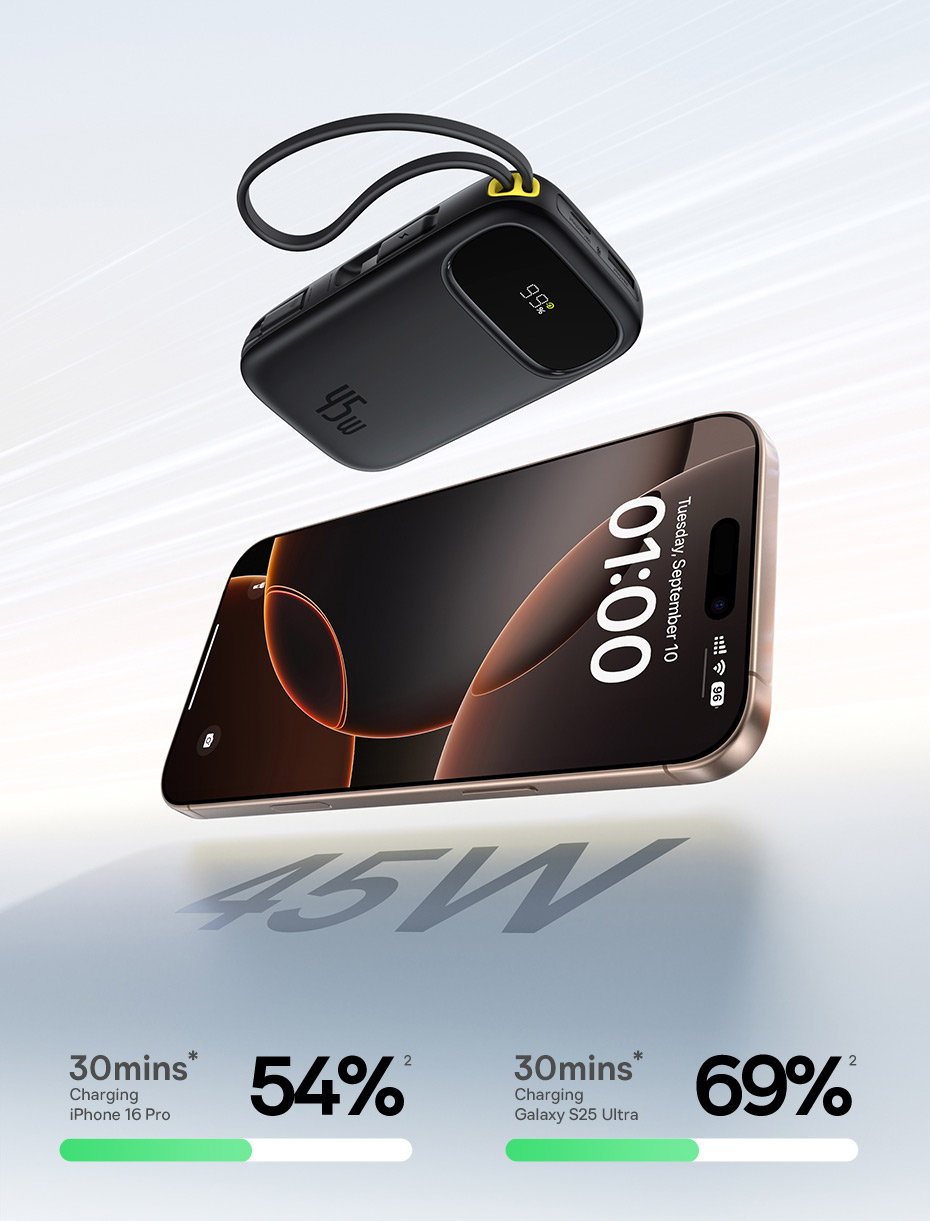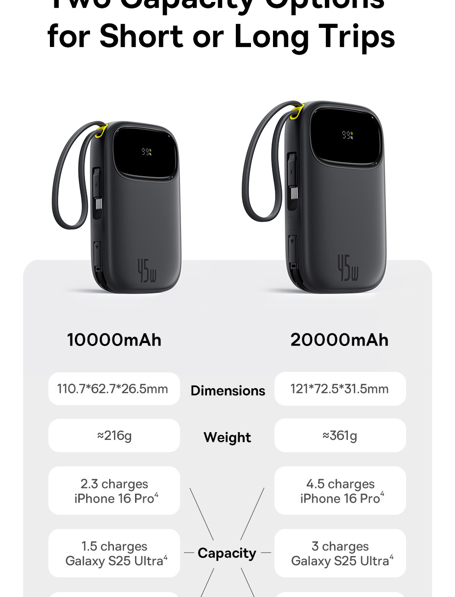 Baseus EnerFill FC31 Digital Display Power Bank with 2 Built-in USB-C Cables 10000mAh 45W Nebula Purple