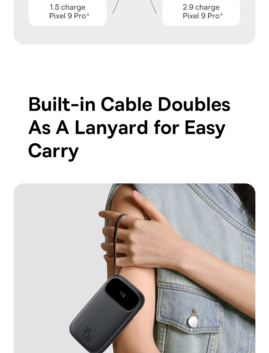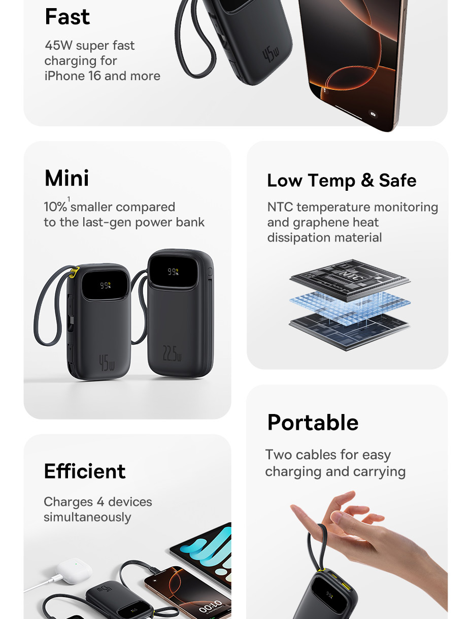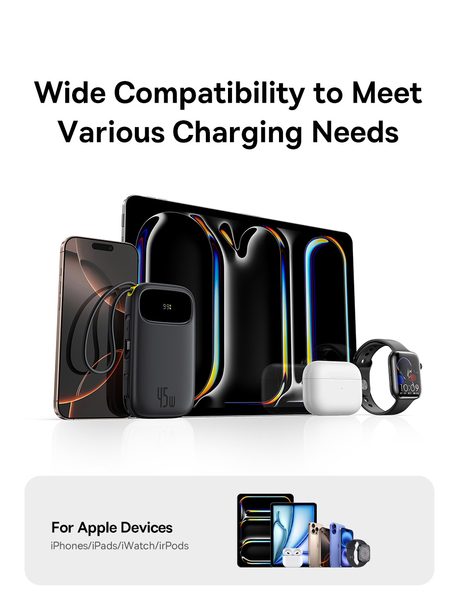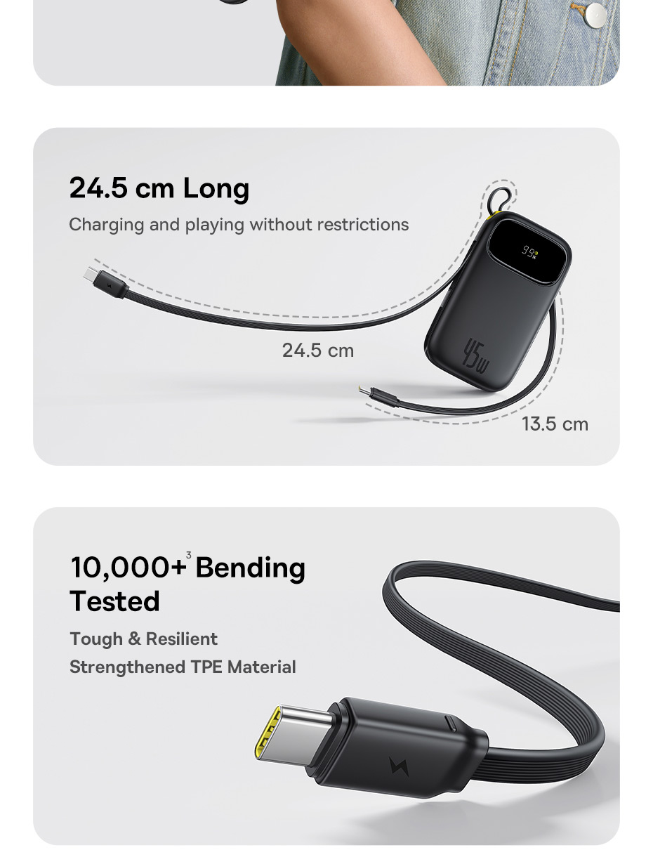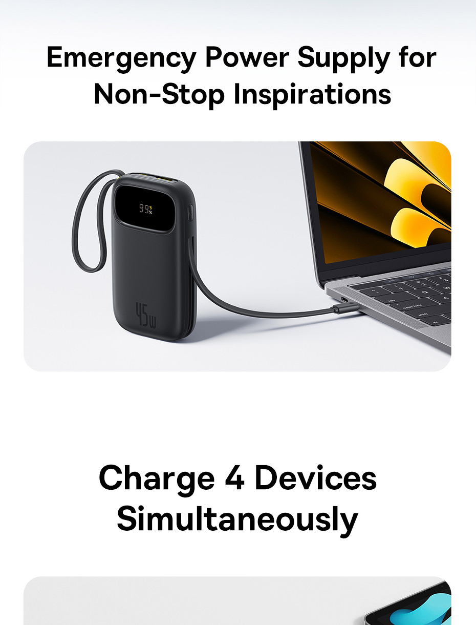 Baseus EnerFill FC31 Digital Display Power Bank with 2 Built-in USB-C Cables 10000mAh 45W Nebula Purple