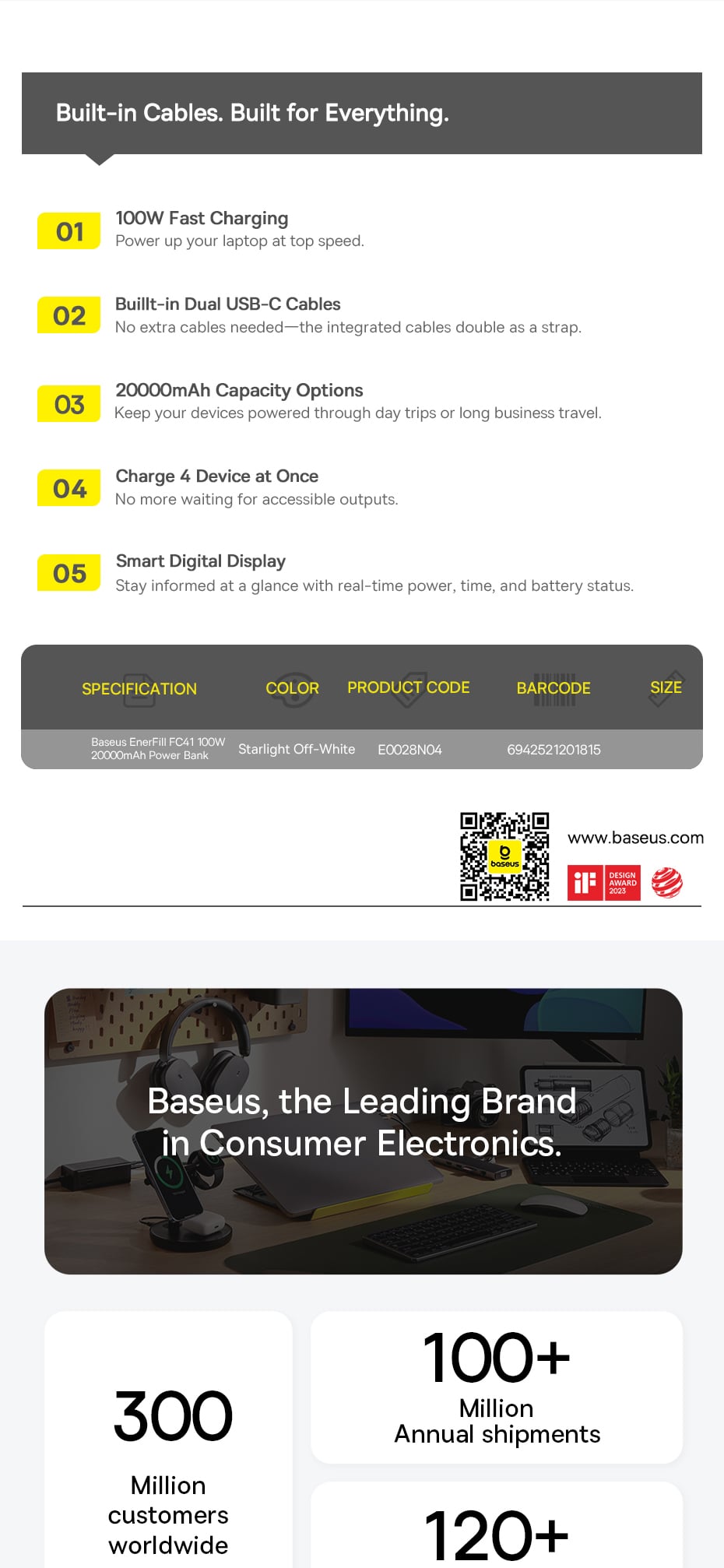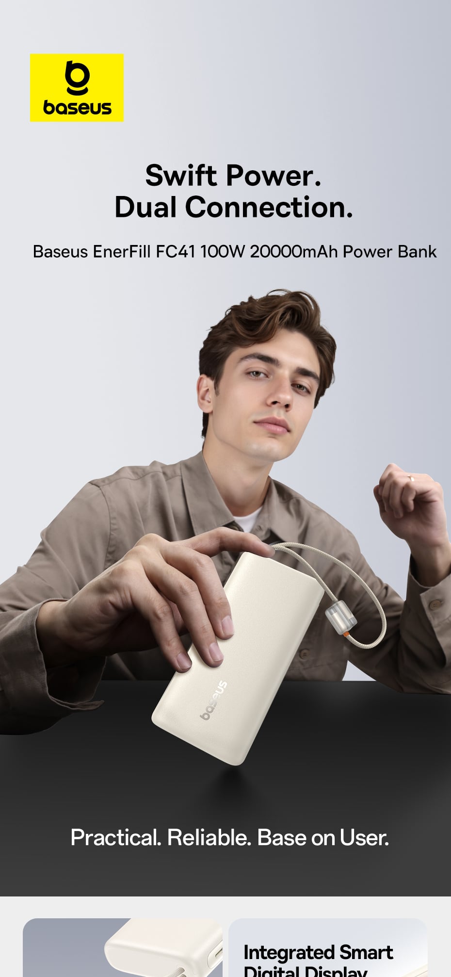 Giới thiệu Pin Dự Phòng Baseus EnerFill FC41 20000mAh 100W (Digital Display, with Dual Built-in USB-C Cables, 1*Type-C + 1*USB-A port)