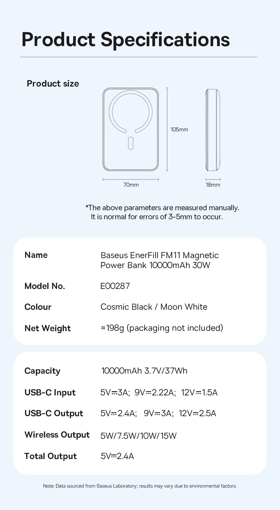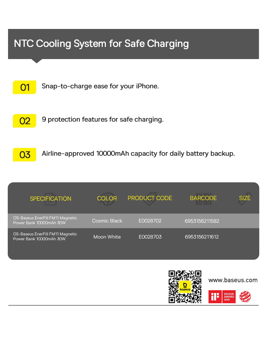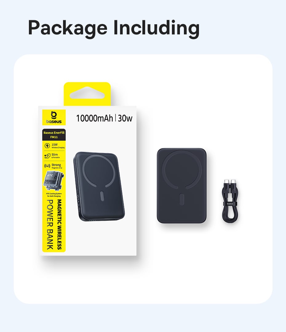 • Tên tiếng Việt: Pin Dự Phòng Không Dây Baseus EnerFill FM11 10000mAh 30W (1*Type-C port, NTC Cooling System, 15W Wireless Charging)