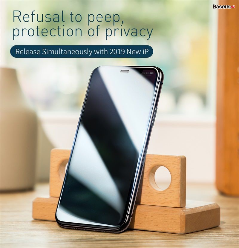 - Tên tiếng Việt: Kính cường lực chống nhìn trộm, chống bụi màn loa Baseus Full-screen Curved Privacy Tempered Glass Film dùng cho iPhone 11/ Pro/ Pro Max (0.3mm, 2 PCS, Cellular Dust Prevention/ Anti Peeping )
