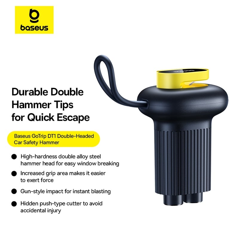 Búa phá kính thoát hiểm dùng trên xe hơi Baseus GoTrip DT1 Double-Headed Car Safety Hammer Cosmic Black