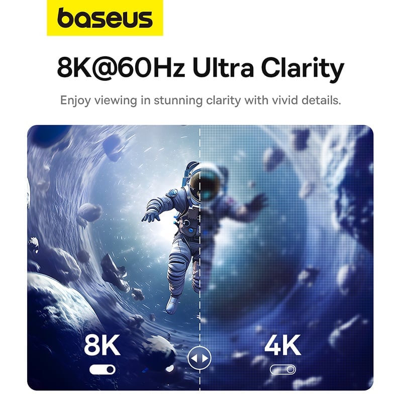 Hỗ trợ độ phân giải lên đến 8K@60Hz và 4K@240Hz, cùng công nghệ Dynamic HDR, cáp Baseus High Definition Series mang lại trải nghiệm hình ảnh chân thực, chi tiết và mượt mà, kể cả với các nội dung đồ họa và video chất lượng cao.