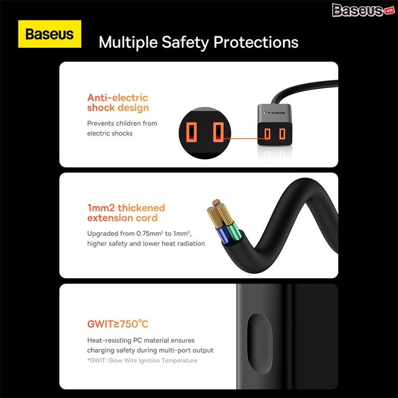 Chức Năng Chính Của Adapter Nối Dài Du Lịch Đa Năng Baseus PowerCombo mini PowerStrip
