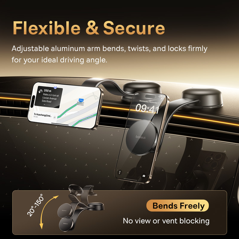 Tính năng Giá Đỡ Điện Thoại Nam Châm Trên Ô Tô Baseus PrimeTrip C02 (Suction Cup Version, Flexible Aluminum Arm, 720° Full-Range View, Vacuum-Boosted Suction Cup, 18N Automotive-Grade Magnetic)