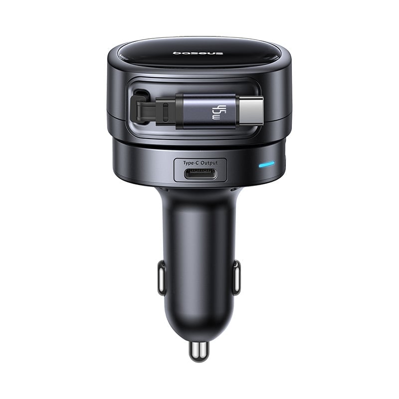 Hình Ảnh Tẩu Sạc Cho Ô Tô Baseus PrimeTrip VR1 60W (With 0.8m Retractable Cable (U+C) + Type-C, 180° Rotating Design, Dual Anti-Slip Clips, LED Indicator, 60W Triple Ports)