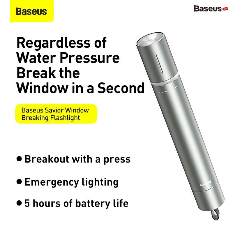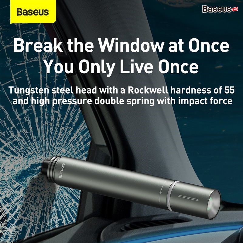 Giới thiệu sản phẩm Búa phá kính thoát hiểm tích hợp đèn Flash cứu hộ Baseus Savior Window Breaking Flashlight