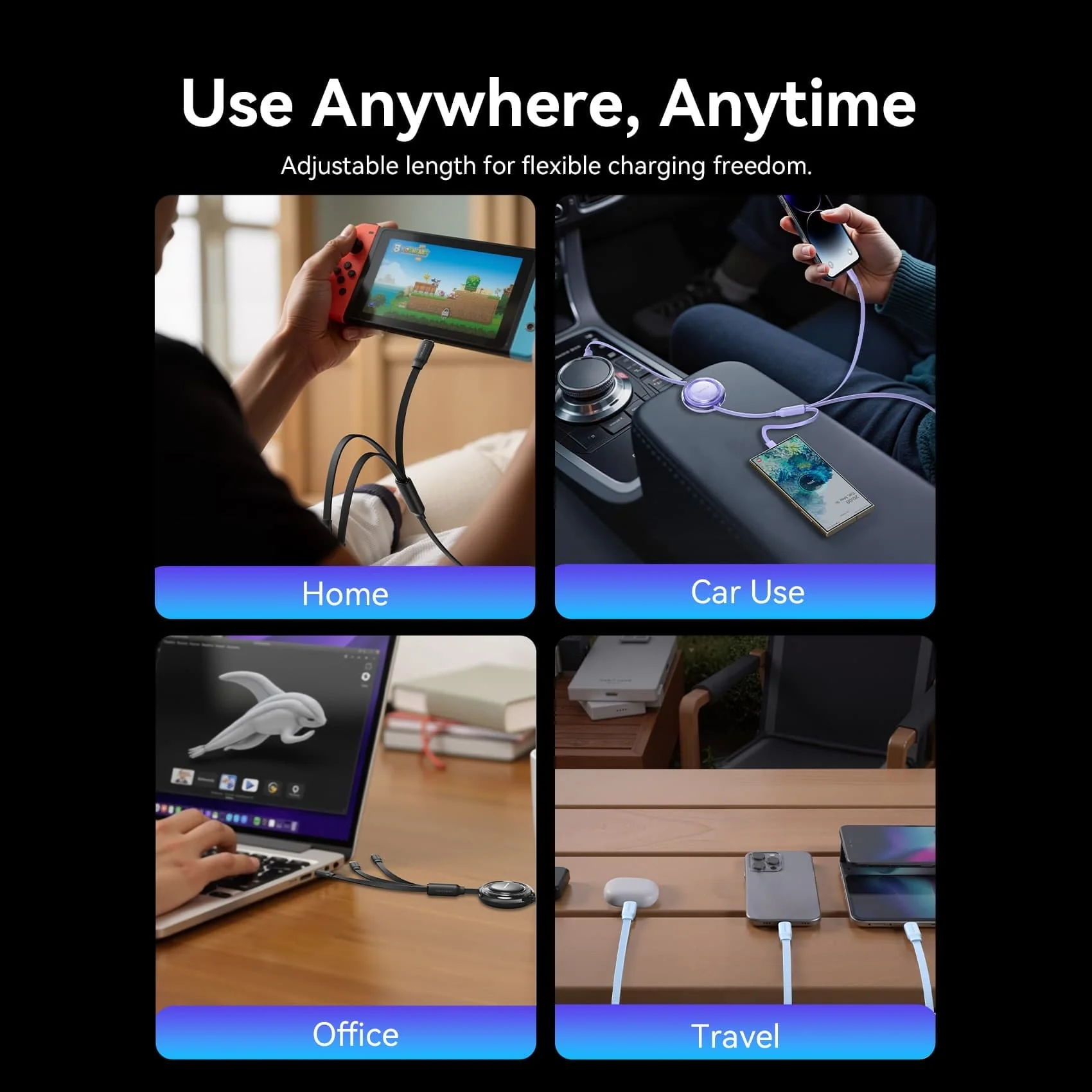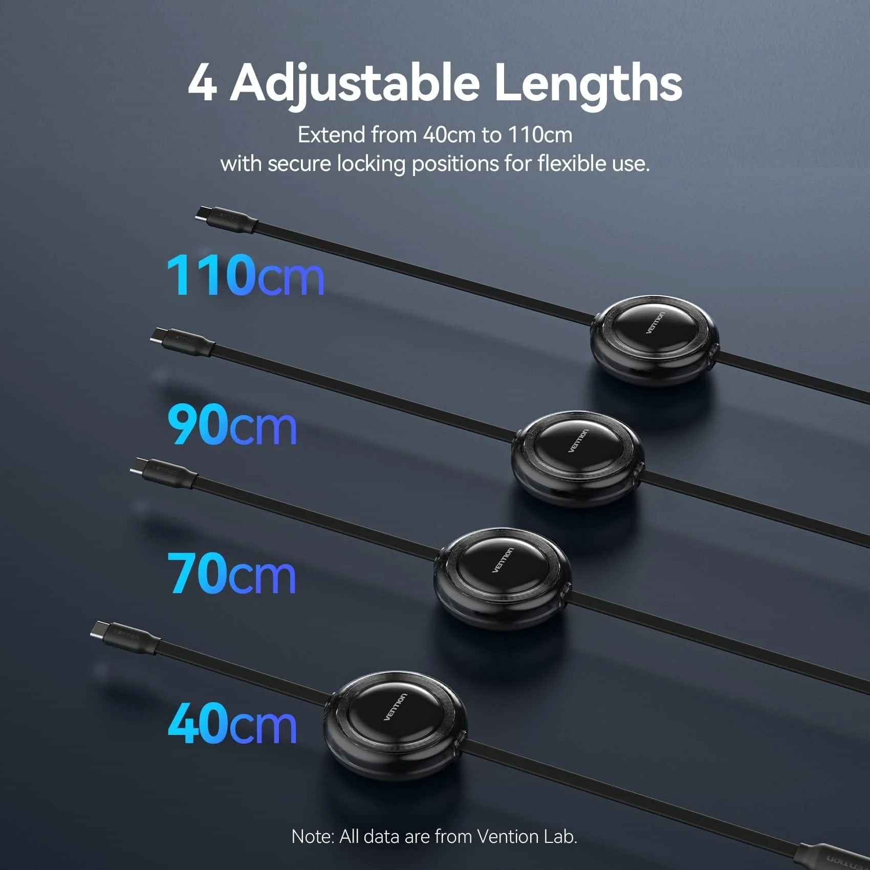 Cáp Sạc Dây Rút Đa Năng 3-in-1 C to L+2C VENTION TRK 100W – BLACK