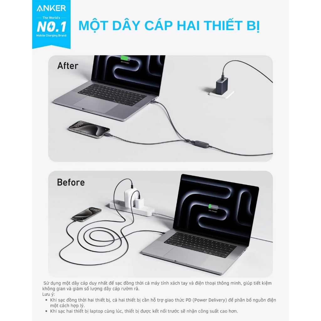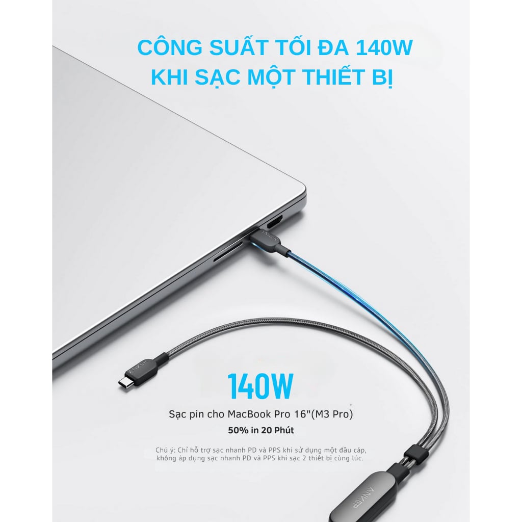 Trong thời đại công nghệ hiện đại, việc sạc nhanh và ổn định cho các thiết bị hỗ trợ chuẩn USB-C là yếu tố then chốt giúp tối ưu hóa hiệu suất làm việc cũng như trải nghiệm người dùng. Cáp sạc nhanh C to 2C 2-in-1 Anker A8895 140W ra đời nhằm cung cấp giải pháp sạc đa năng với công suất mạnh mẽ lên đến 140W, đồng thời cho phép sạc đồng thời hai thiết bị chỉ với một sản phẩm duy nhất. Đây chính là phụ kiện lý tưởng cho những người dùng chuyên nghiệp và những ai thường xuyên di chuyển, đòi hỏi tốc độ sạc nhanh và tính linh hoạt cao.