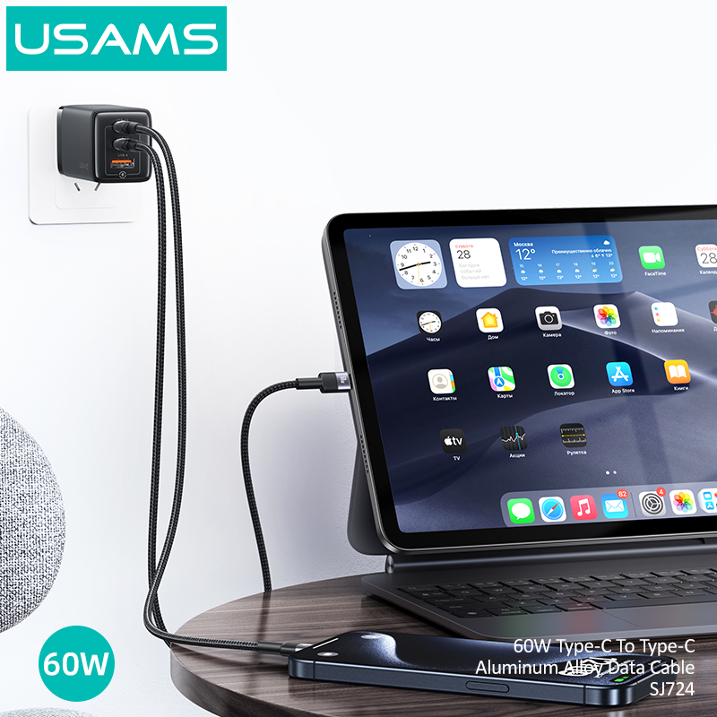 • Tên tiếng Việt: Cáp sạc nhanh USAMS SJ724 60W Type-C To Type-C Aluminum Alloy SY Series