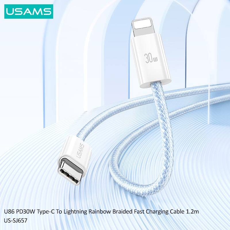 • Tên tiếng Việt: Cáp sạc nhanh USAMS SJ657 U86 PD30W Type-C To Lightning Rainbow Braided