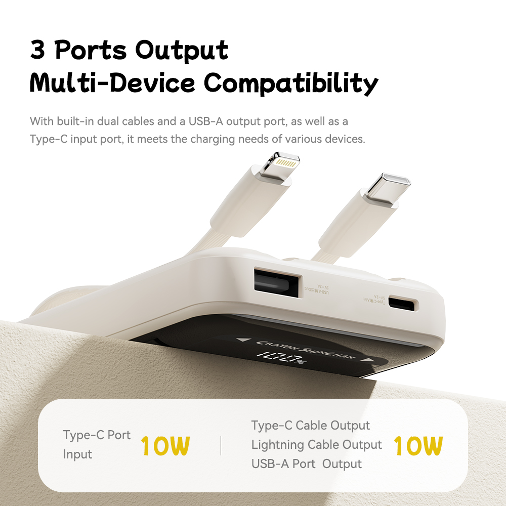 Tính năng Pin Dự Phòng ROCK Crayon Shinchan P55 10000mAh 10W (with Built-in Cables, Smart Digital Display)