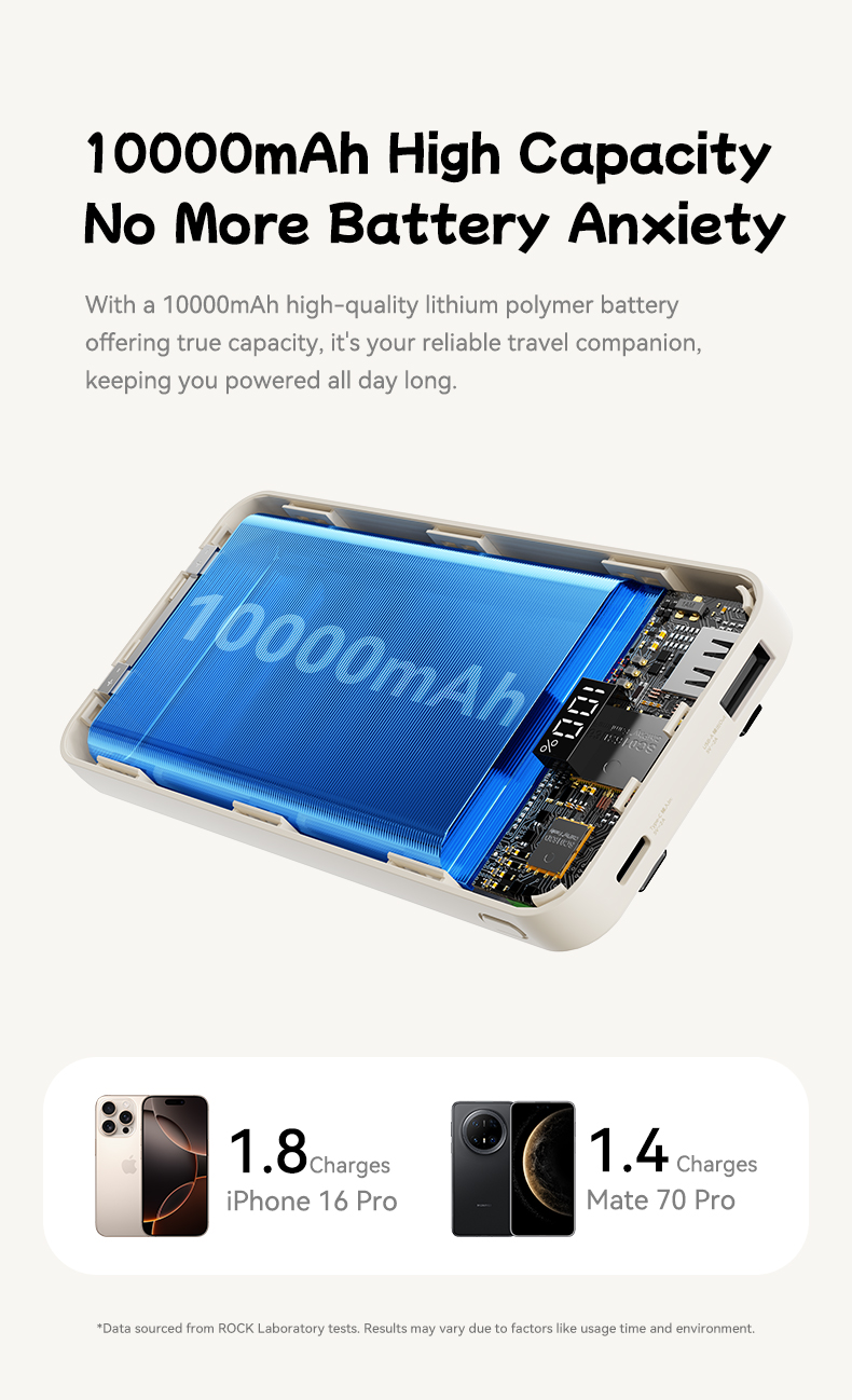 Với dung lượng pin lớn, Rock P55 có thể sạc đầy các dòng điện thoại phổ thông từ 2-3 lần, đảm bảo các thiết bị của bạn luôn trong trạng thái sẵn sàng hoạt động suốt cả ngày dài.