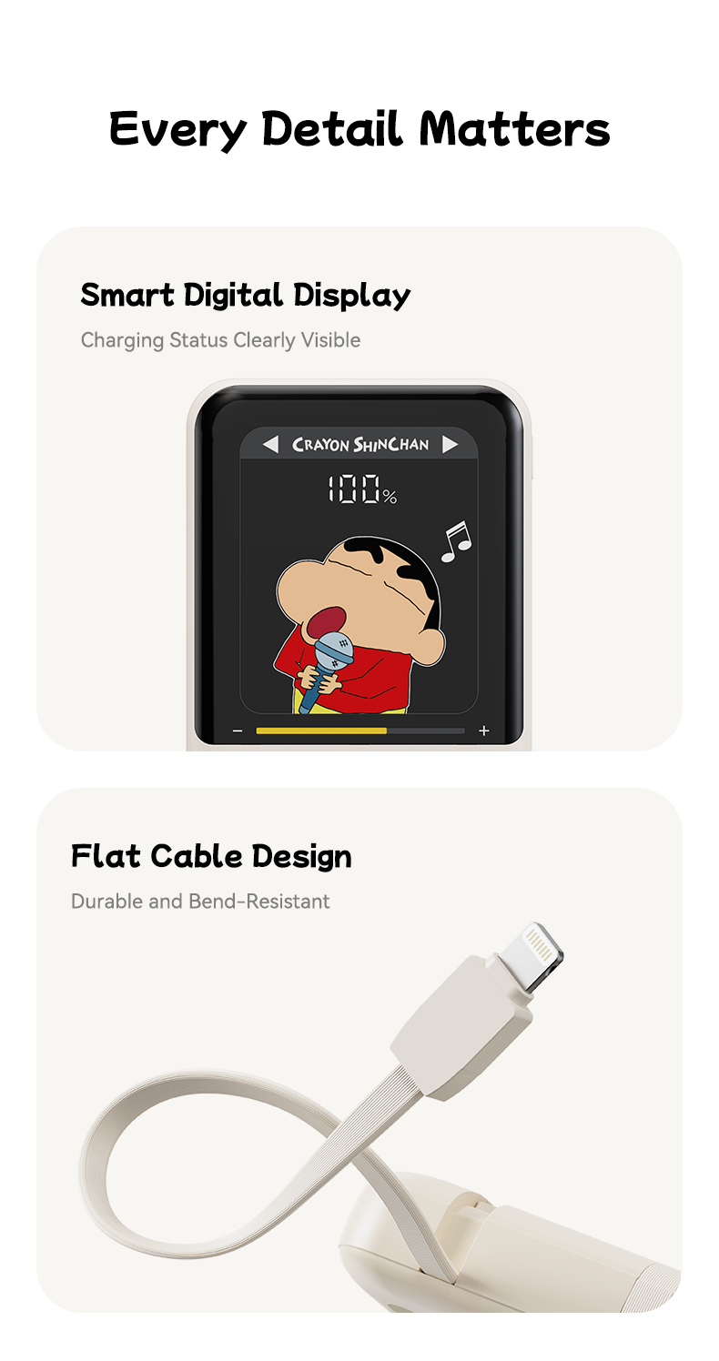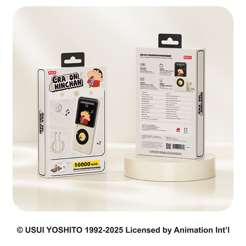 Giới thiệu Pin Dự Phòng ROCK Crayon Shinchan P55 10000mAh 10W (with Built-in Cables, Smart Digital Display)