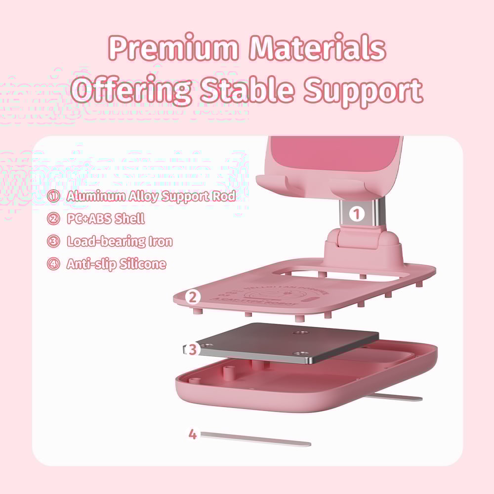 Được chế tác từ sự kết hợp giữa ABS, Hợp kim nhôm và Silicone, giá đỡ đảm bảo sự vững chãi, giữ cho điện thoại của bạn luôn ổn định. Lớp đệm silicone chống trượt giúp bảo vệ thiết bị khỏi trầy xước và rơi rớt.