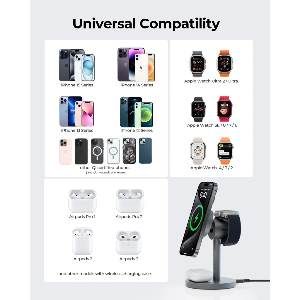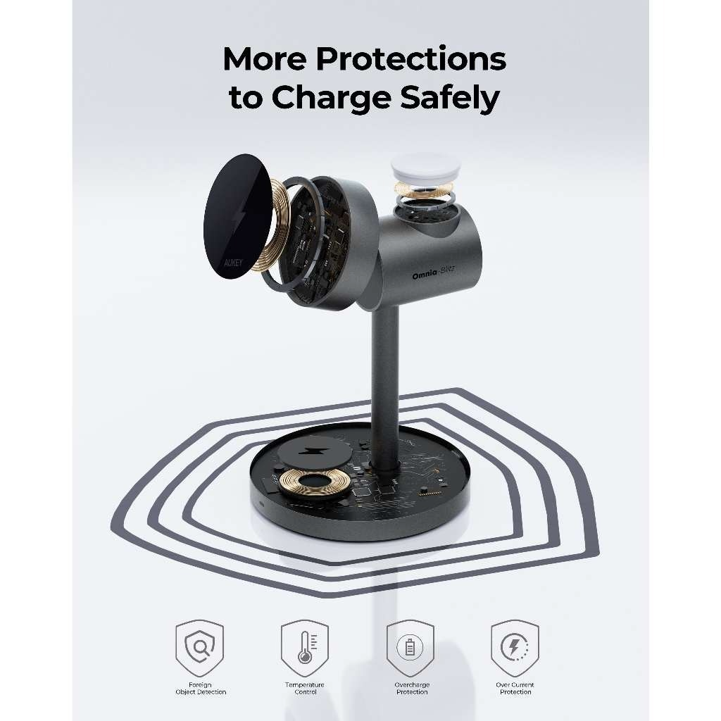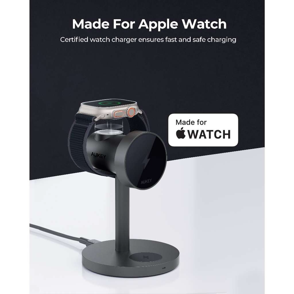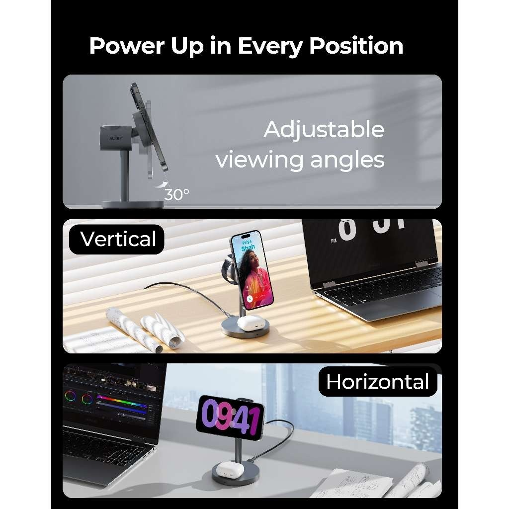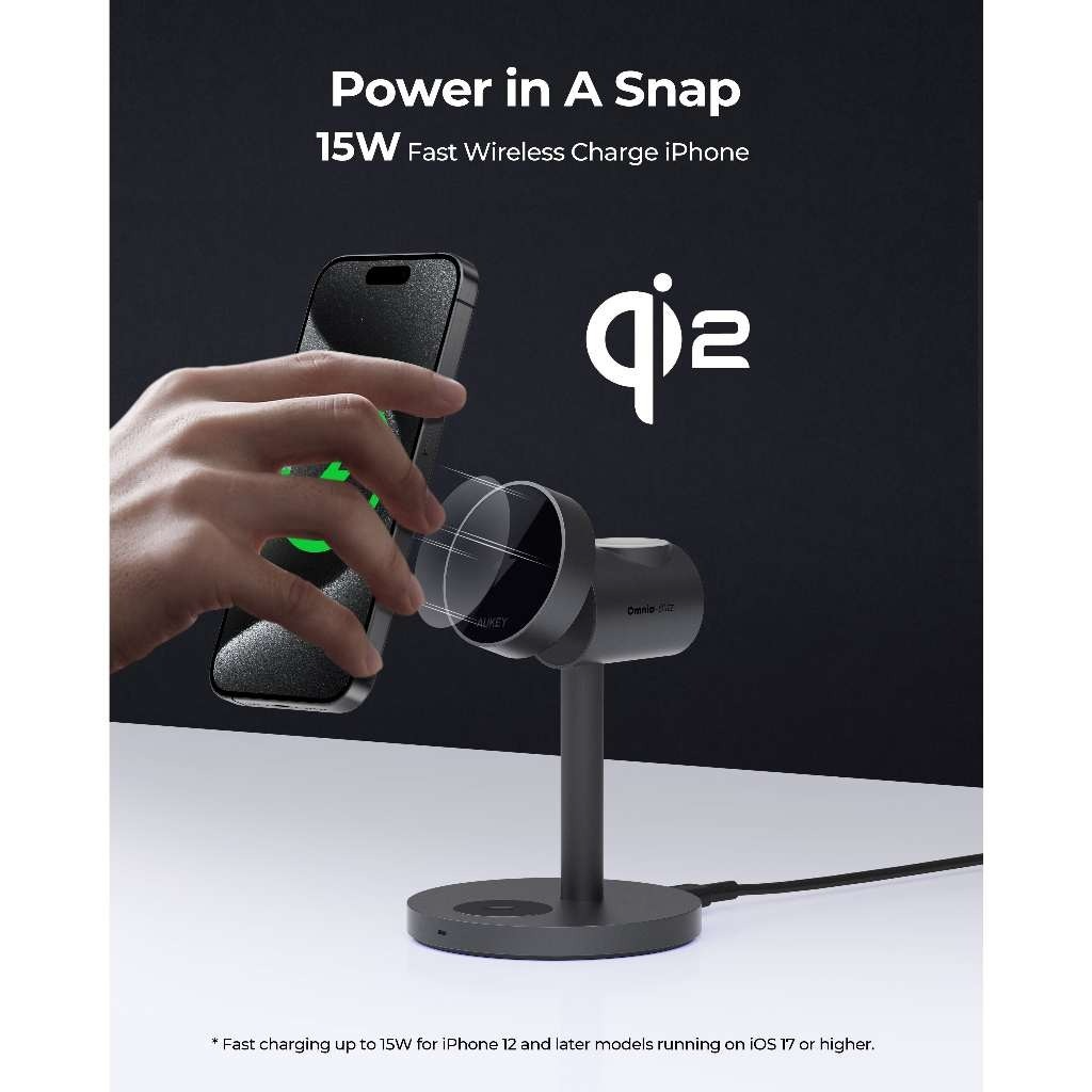 Tính năng Đế Sạc Đứng Không Dây 3-in-1 AUKEY LC-MC311 15W (Sạc không dây chuẩn Qi2, Hít từ tính MagFusion)