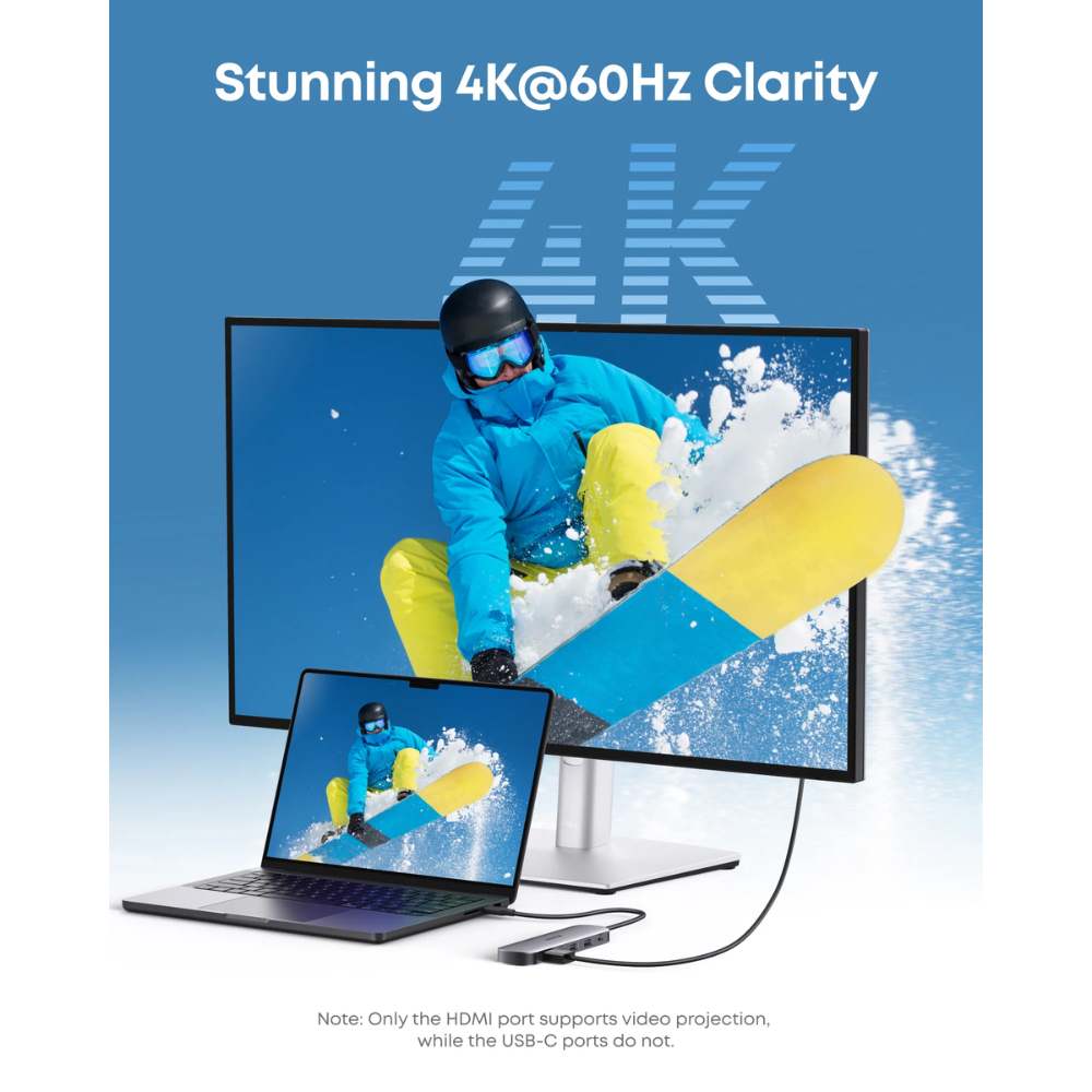 Trong khi nhiều hub khác chỉ hỗ trợ 4K@30Hz, ANKER A83D2 nâng cấp trải nghiệm với tần số quét 60Hz, giúp hình ảnh chuyển động mượt mà hơn, giảm thiểu giật lag, lý tưởng cho việc trình chiếu, xem phim và thậm chí là chơi game.