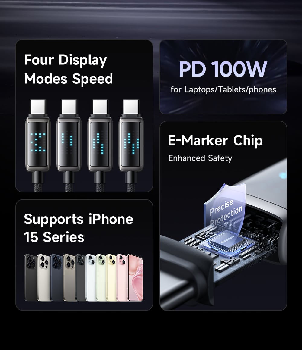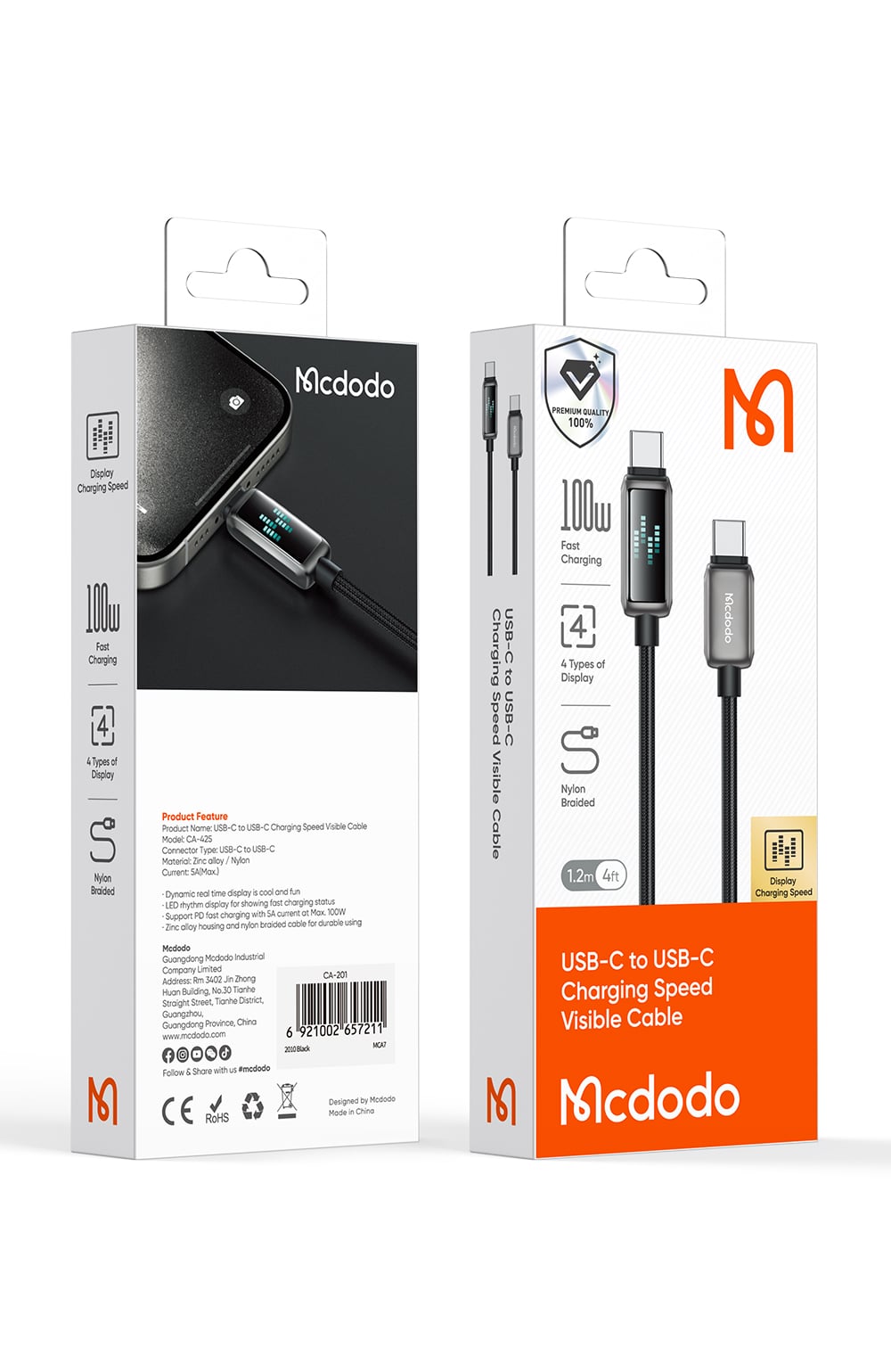 • Tên tiếng Việt: Cáp Sạc Nhanh C to C MCDODO CA-425 100W (1.2m, Four Display Modes Speed, Support CarPlay, 480Mbps)