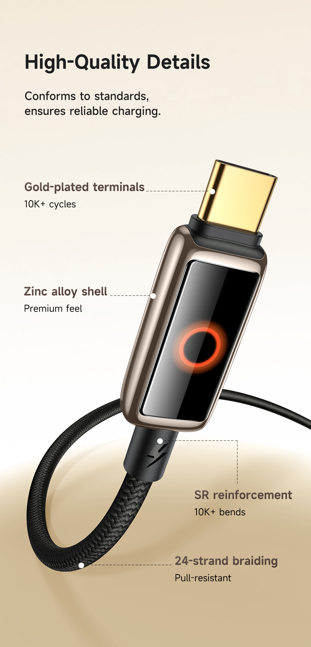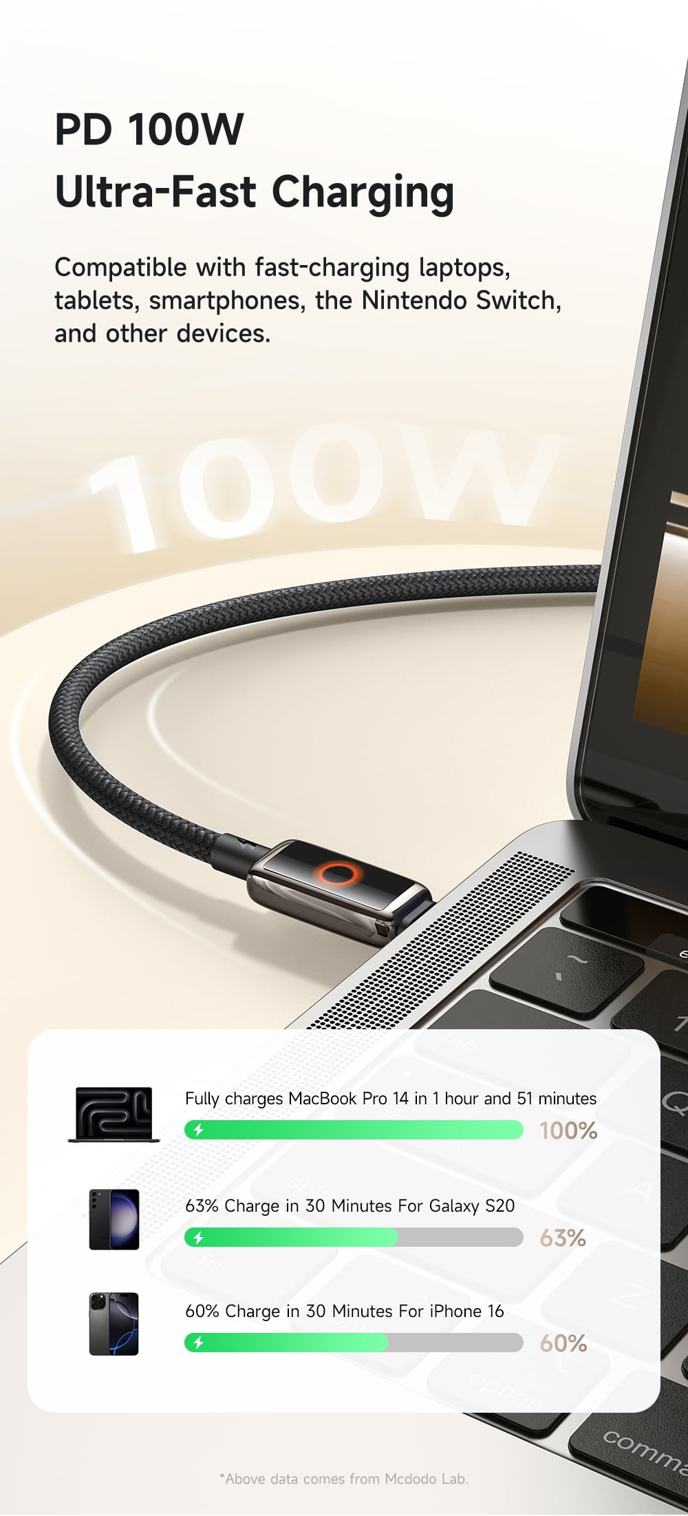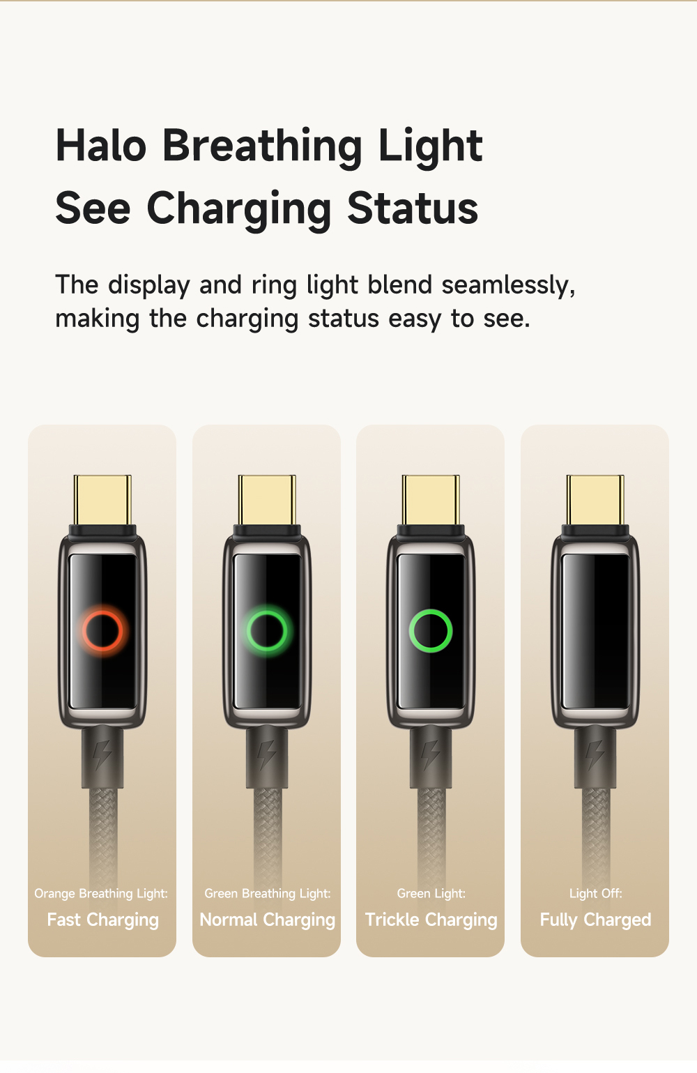 MCDODO CA-668 1.2m C to C 100W Auto Power Off Cable with Breathing Light – GOLD
