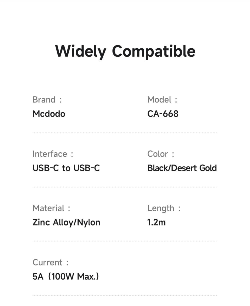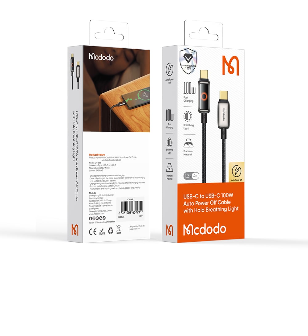 • Tên tiếng Việt: Cáp Sạc Nhanh C to C MCDODO CA-668 100W (1.2m, Auto Power Off, with Breathing Light, 480Mbps)