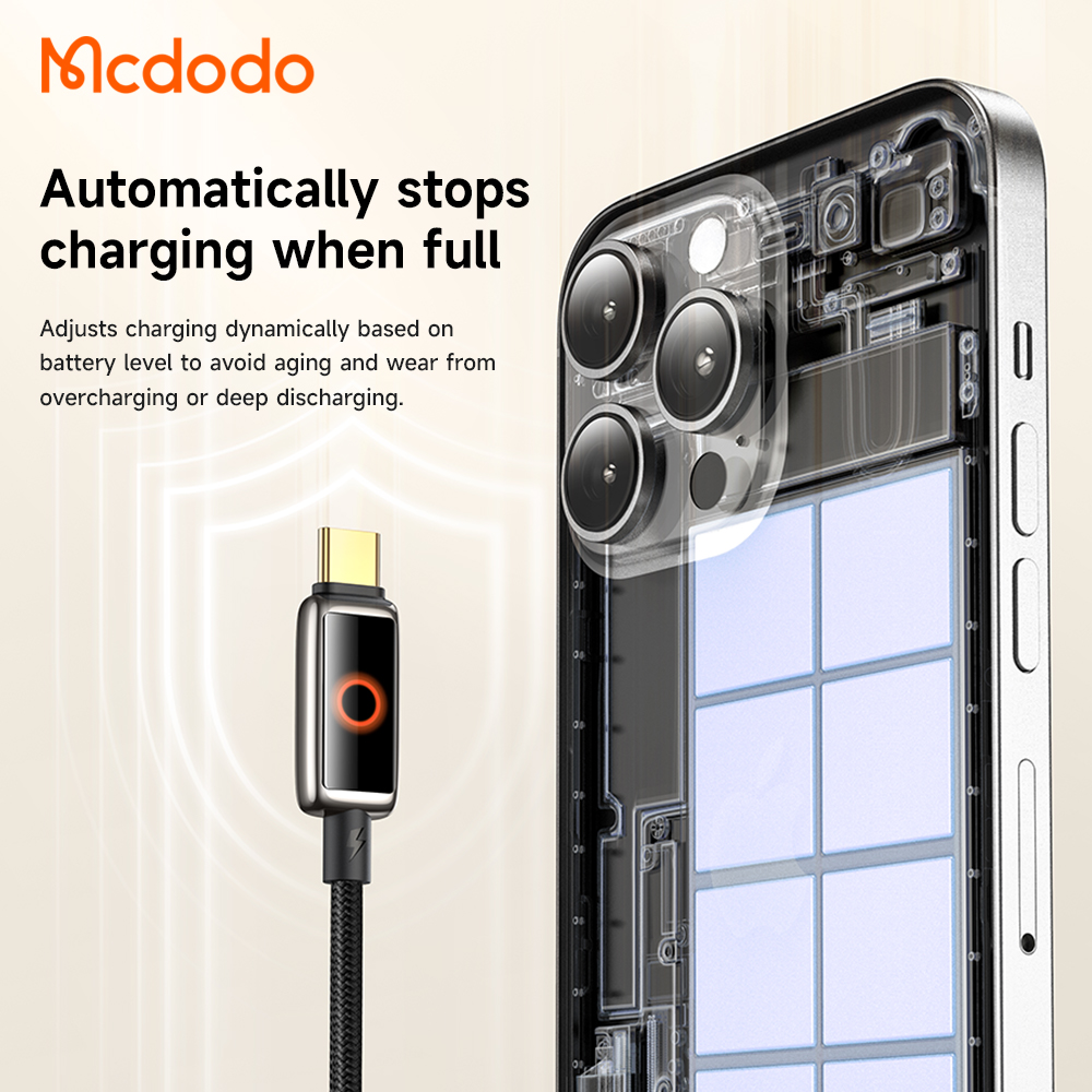 Tính năng Cáp Tự Ngắt C to C MCDODO CA-668 100W (1.2m, Auto Power Off, with Breathing Light, 480Mbps)