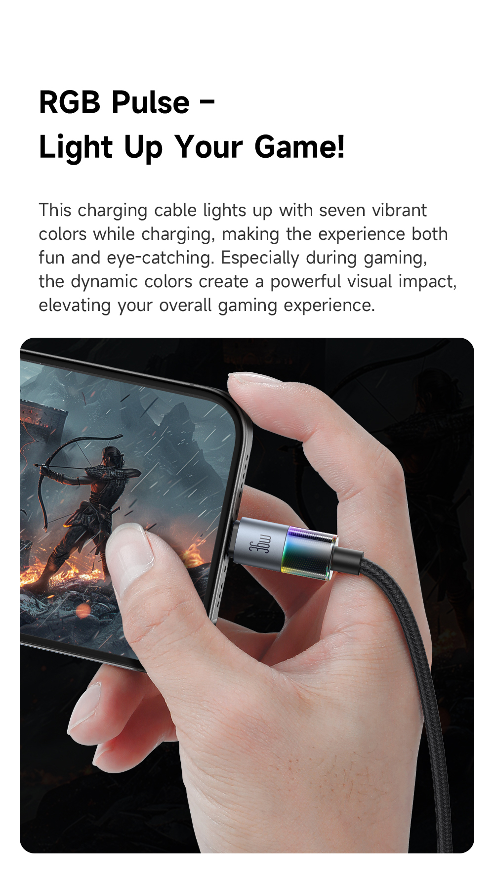 - Cảm hứng Gaming: Thiết kế này đặc biệt phù hợp để setup góc chơi game hoặc tìm kiếm dây sạc dễ dàng trong đêm tối.