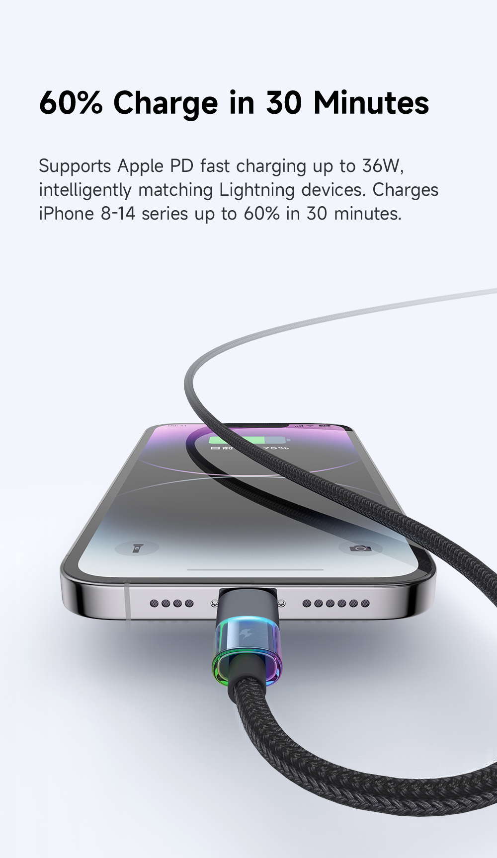Tính năng Cáp Sạc Nhanh C to Lightning MCDODO CA-819 36W (1.2m, 480Mbps, with 7 Colorful Lights)