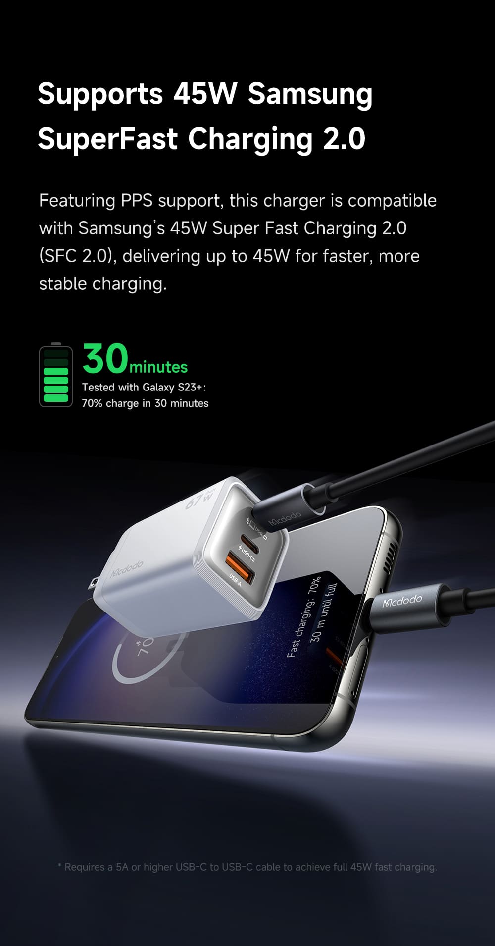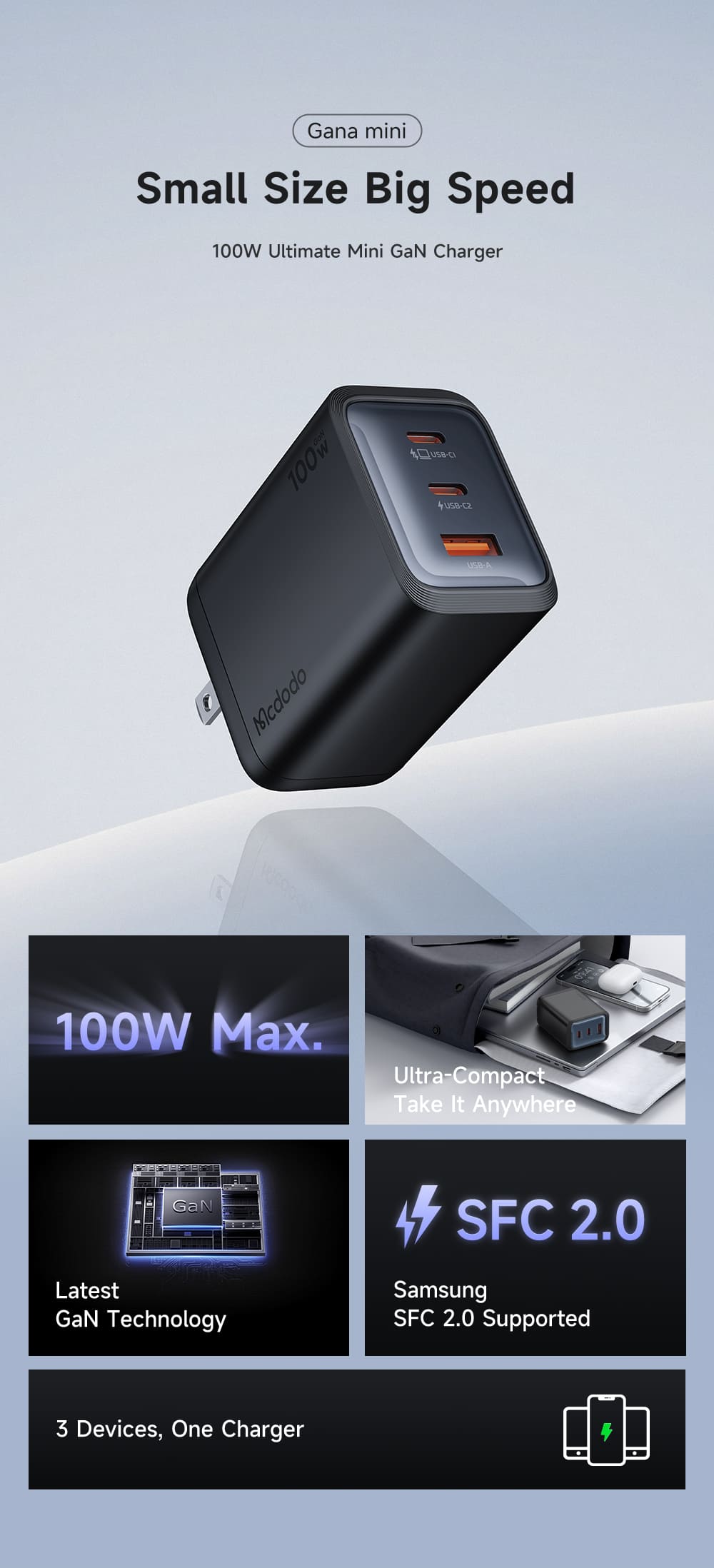 Tính năng Củ Sạc Nhanh MCDODO Gana series CH-011 100W (2*Type-C + 1*USB-A port)