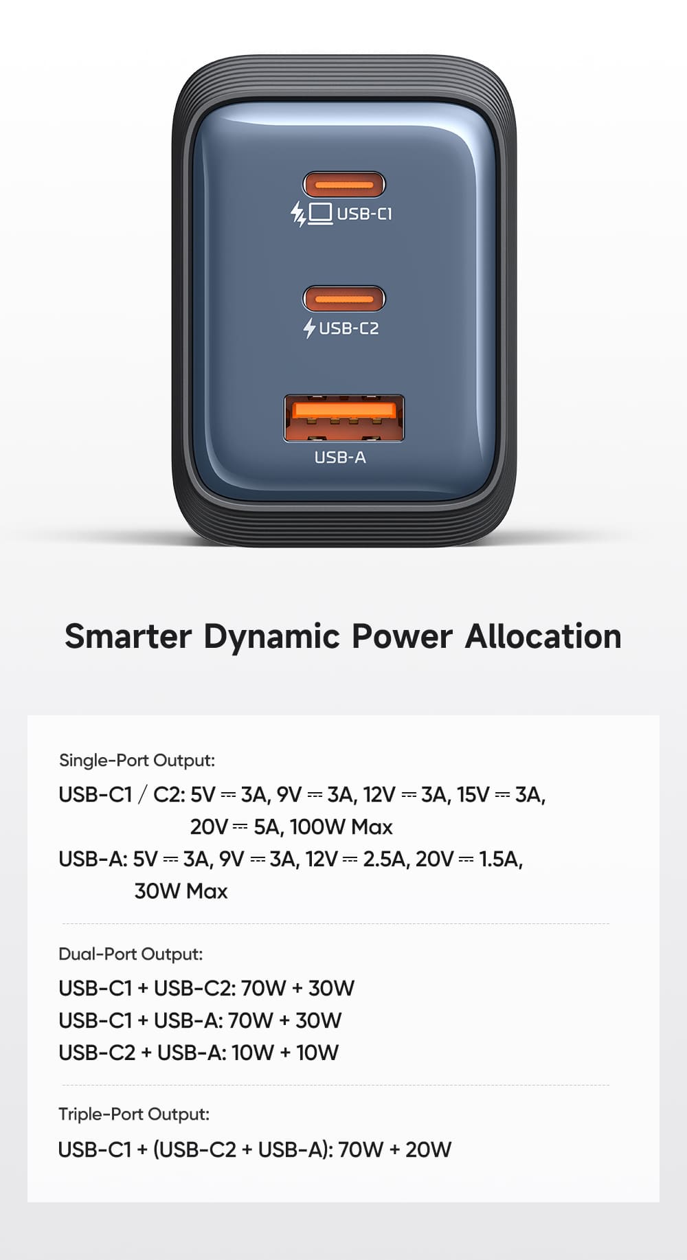 - 2 Cổng Type-C: Hỗ trợ chuẩn PD3.0 (Power Delivery), thích hợp cho MacBook, iPad, iPhone 15/14 series, Samsung Galaxy S/Note series.