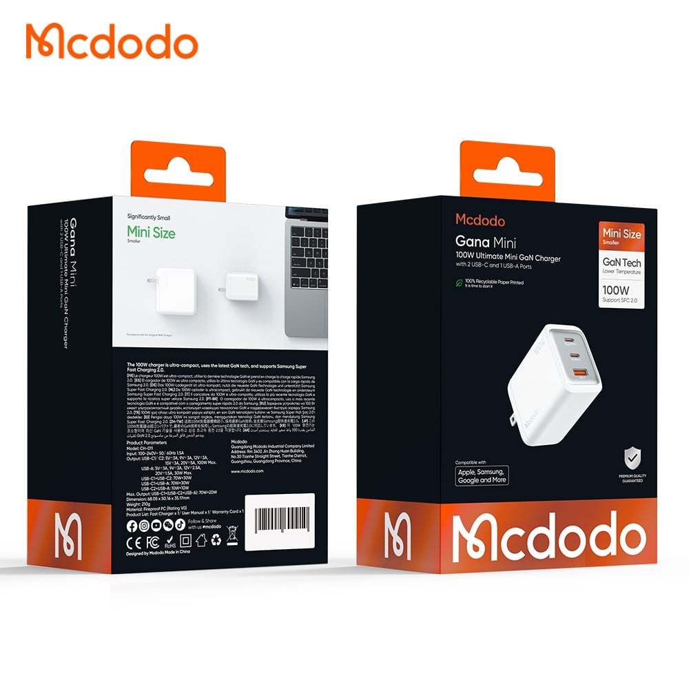 Bạn đang tìm kiếm một củ sạc “chân ái” có thể sạc nhanh cho cả MacBook Pro và iPhone cùng lúc mà vẫn nhỏ gọn để bỏ túi? Mcdodo CH-011 thuộc dòng GaNa Series chính là giải pháp năng lượng toàn diện, kết hợp giữa công suất khủng 100W và thiết kế tối giản, giúp bạn tối ưu hóa không gian làm việc và hành lý di chuyển.