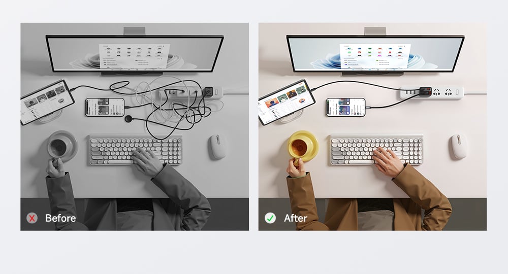 Điểm đặc biệt nhất của CH-129 là sự tiện lợi tối đa. Củ sạc được trang bị sẵn một cáp Type-C dài 65cm quấn gọn gàng quanh thân. Bạn không còn phải lo lắng việc quên mang dây sạc mỗi khi ra ngoài. Bên cạnh đó, củ sạc còn mở rộng thêm: