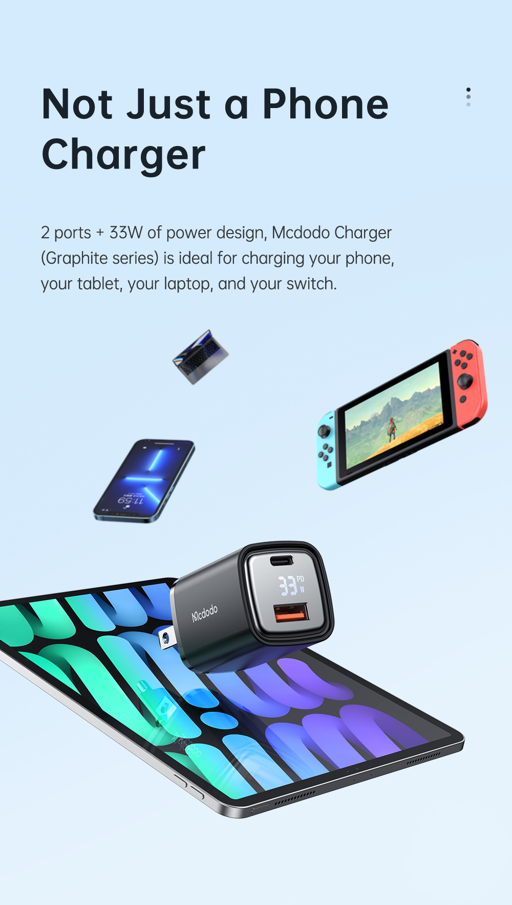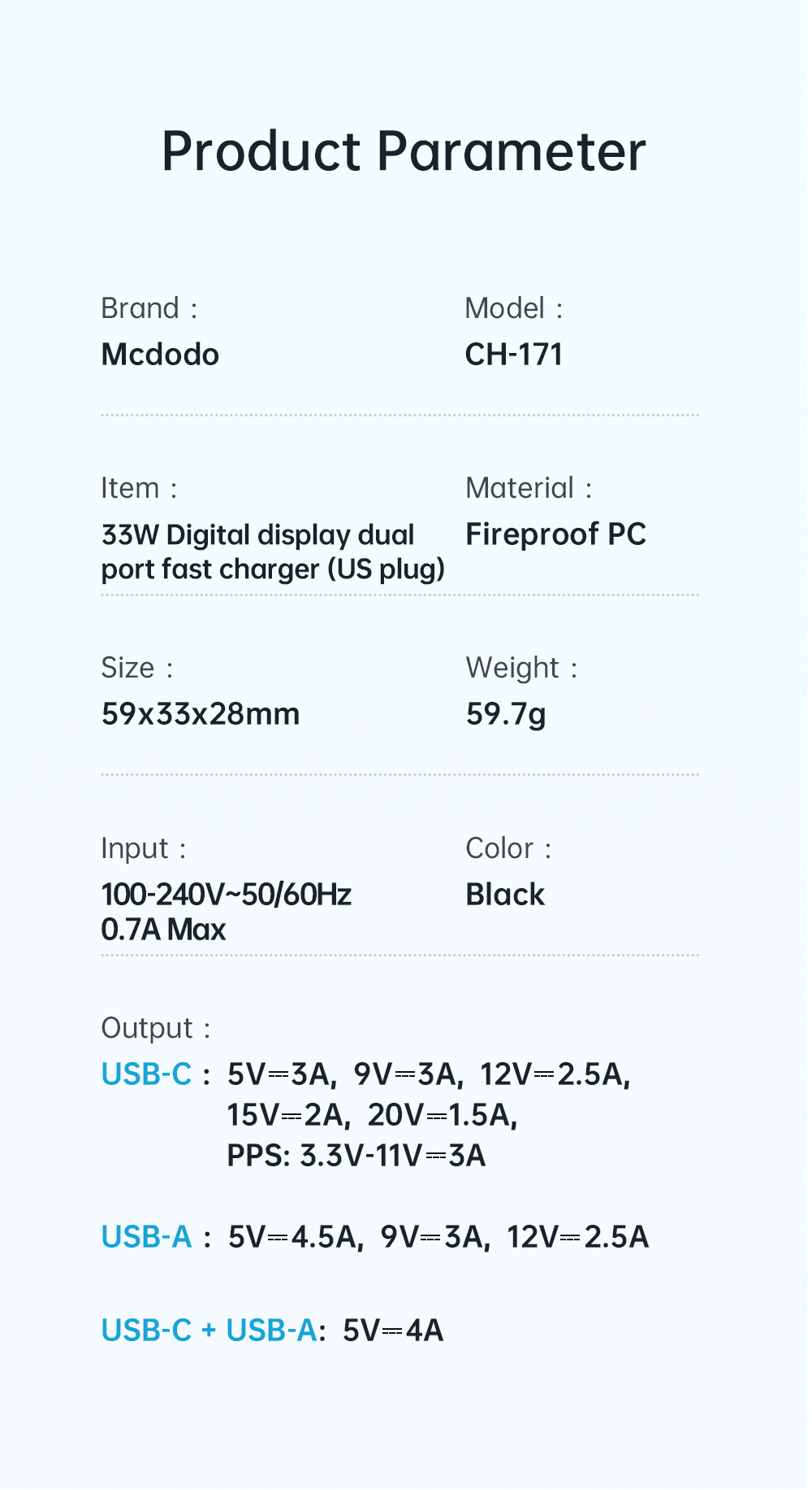 • Tên tiếng Việt: Củ Sạc Nhanh MCDODO Graphite Series CH-171 33W (Digital Display, USB + Type-C port)