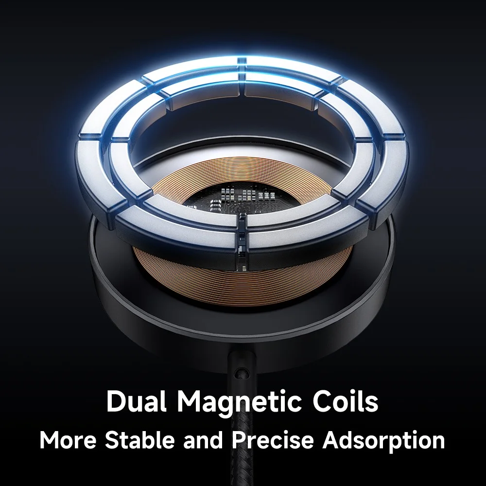 - Hít cực chắc: Trang bị vòng nam châm N52 cường độ cao, giúp đế sạc tự động căn chỉnh và hít chặt vào mặt lưng điện thoại. Bạn không còn phải loay hoay tìm vị trí sạc chính xác.