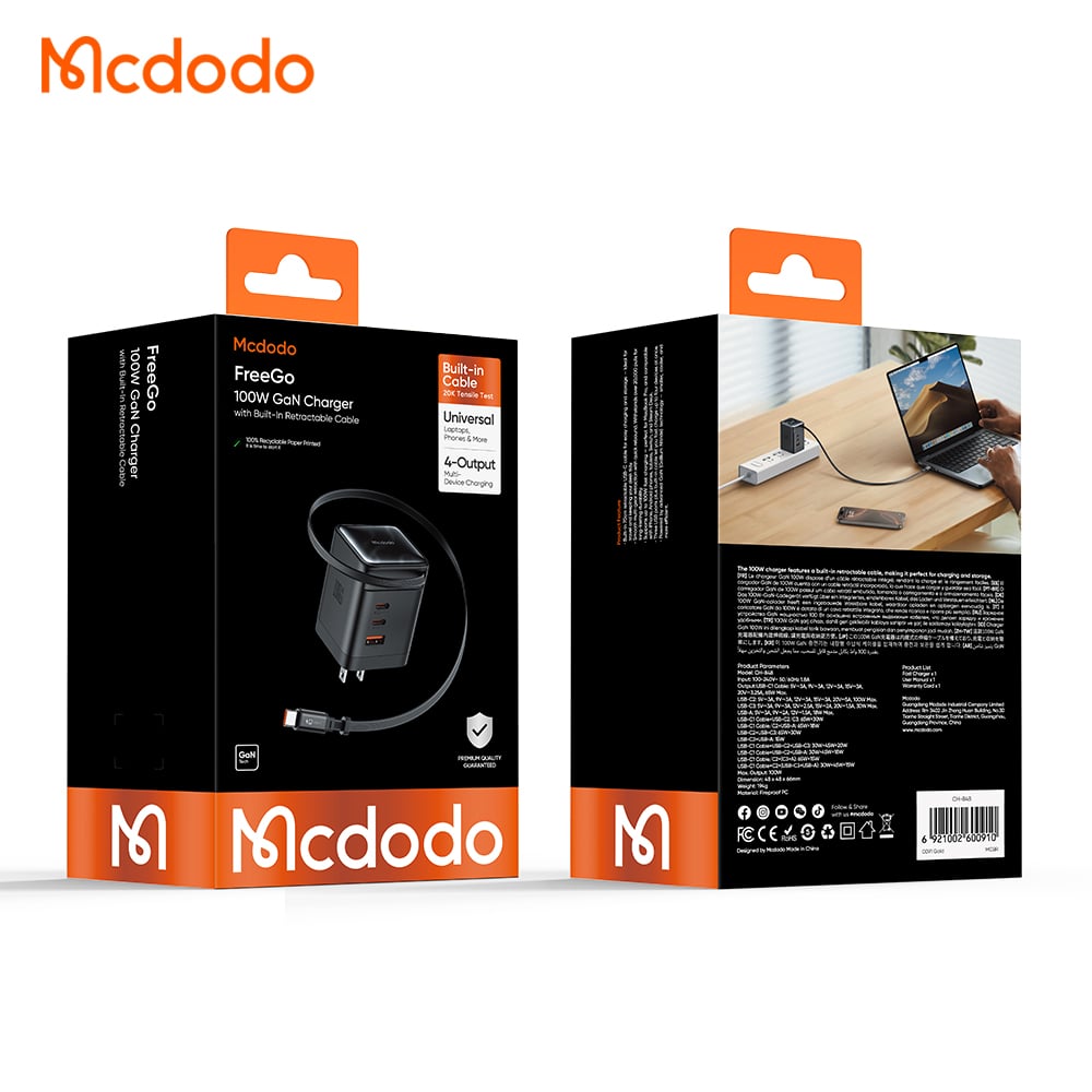 Bạn đã bao giờ cảm thấy phiền toái khi phải mang theo lỉnh kỉnh củ sạc, dây cáp rối rắm mỗi khi ra ngoài? Mcdodo CH-848 thuộc dòng FreeGo Series chính là giải pháp tối thượng giúp bạn “giải phóng” balo của mình. Với công suất khủng 100W, công nghệ GaN tiên tiến và đặc biệt là dây cáp rút tích hợp sẵn, đây là phụ kiện “chân ái” cho người dùng Macbook và các thiết bị di động cao cấp.