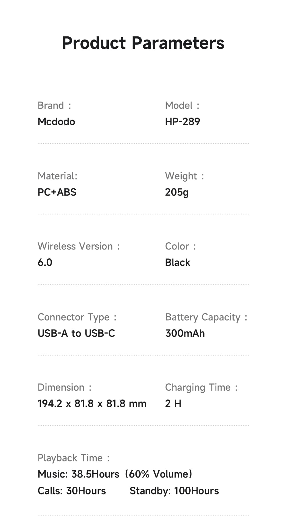Tính năng Tai Nghe Chụp Tai Không Dây MCDODO H01 series HP-289 (Bluetooth v6.0, 12.5H, ENC Clear Call, 300mAh)