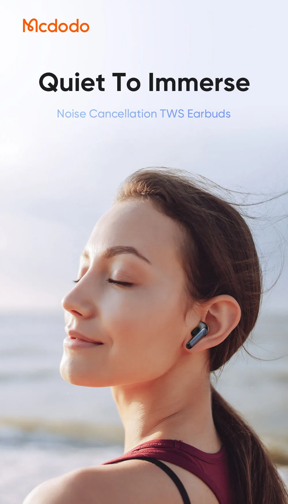 - Cảm giác đeo êm ái: Thiết kế công thái học ôm sát hốc tai, mang lại sự thoải mái tối đa ngay cả khi đeo trong thời gian dài. Trọng lượng siêu nhẹ chỉ 35g (tổng cộng).