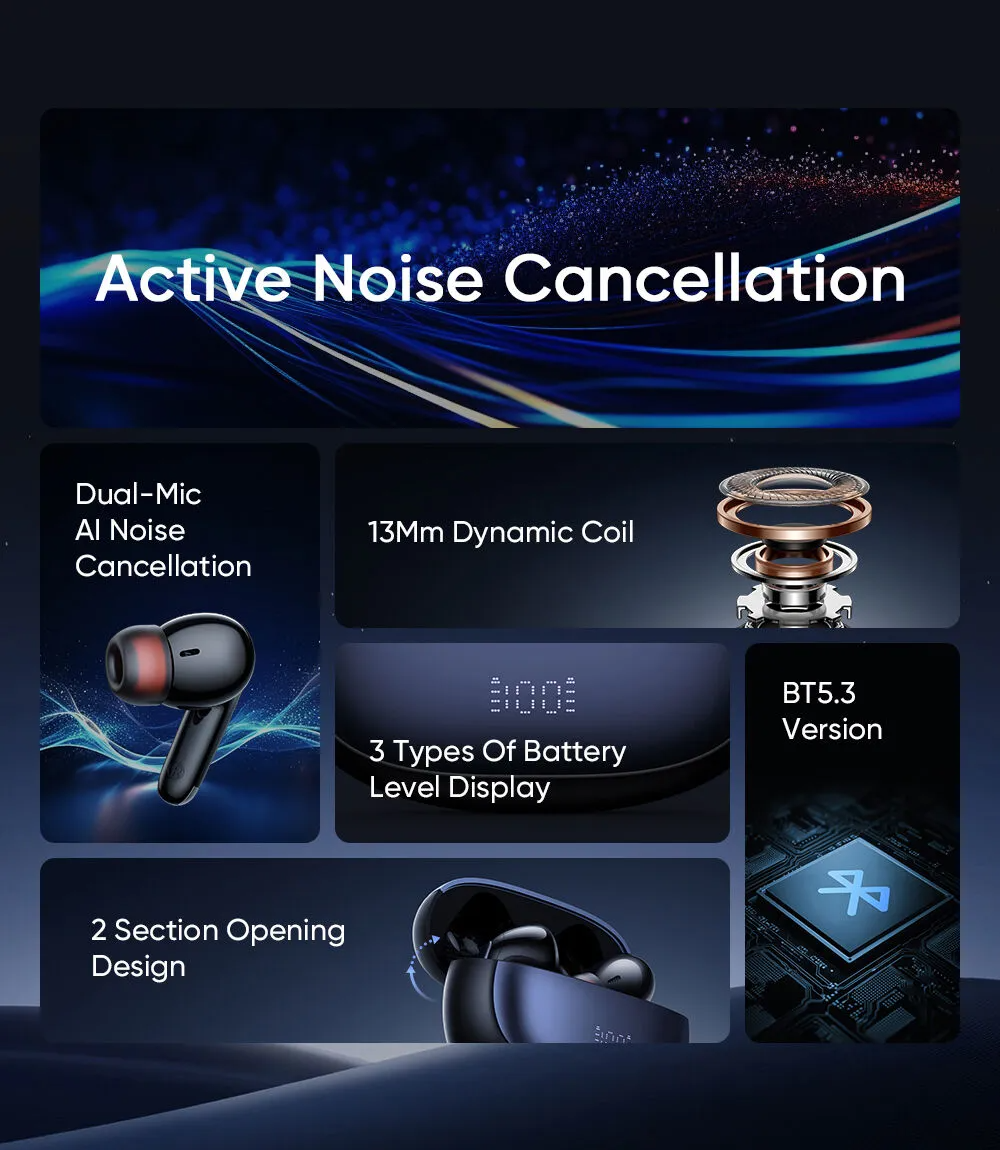 - ANC (Active Noise Cancellation): Công nghệ chống ồn chủ động giúp triệt tiêu các tạp âm tần số thấp từ môi trường như tiếng động cơ, tiếng gió, mang lại không gian yên tĩnh tuyệt đối.
