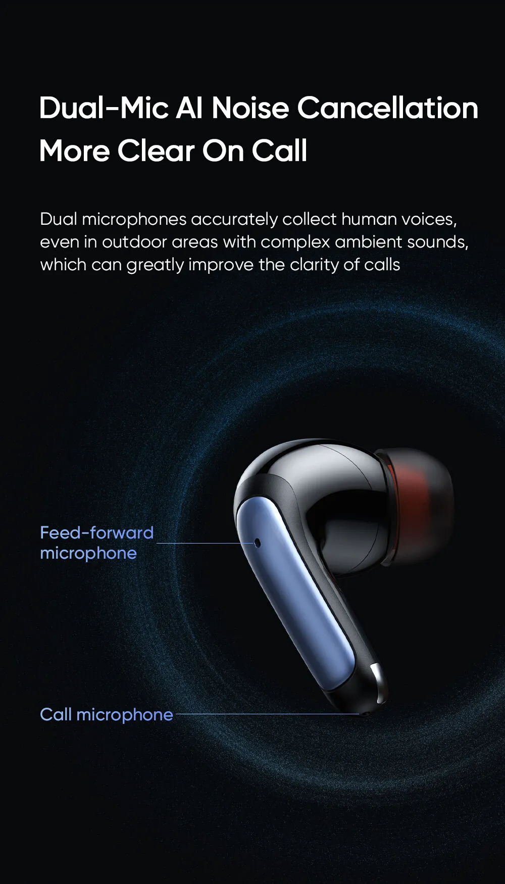 - ENC (Environmental Noise Cancellation): Hệ thống micro thông minh tập trung thu giọng nói và lọc bỏ tiếng ồn xung quanh khi đàm thoại, giúp đầu dây bên kia nghe giọng bạn rõ ràng nhất.