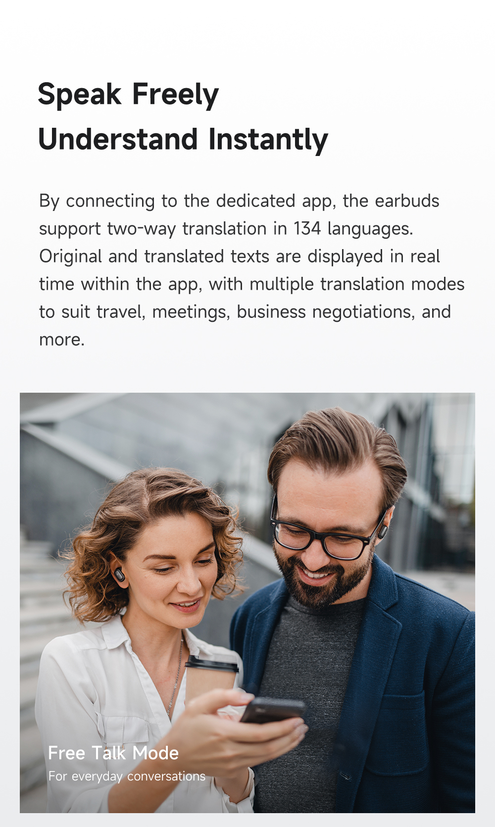 - Dịch thuật trực tiếp: Thông qua ứng dụng (App) đi kèm, tai nghe hỗ trợ dịch thuật đa ngôn ngữ theo thời gian thực.