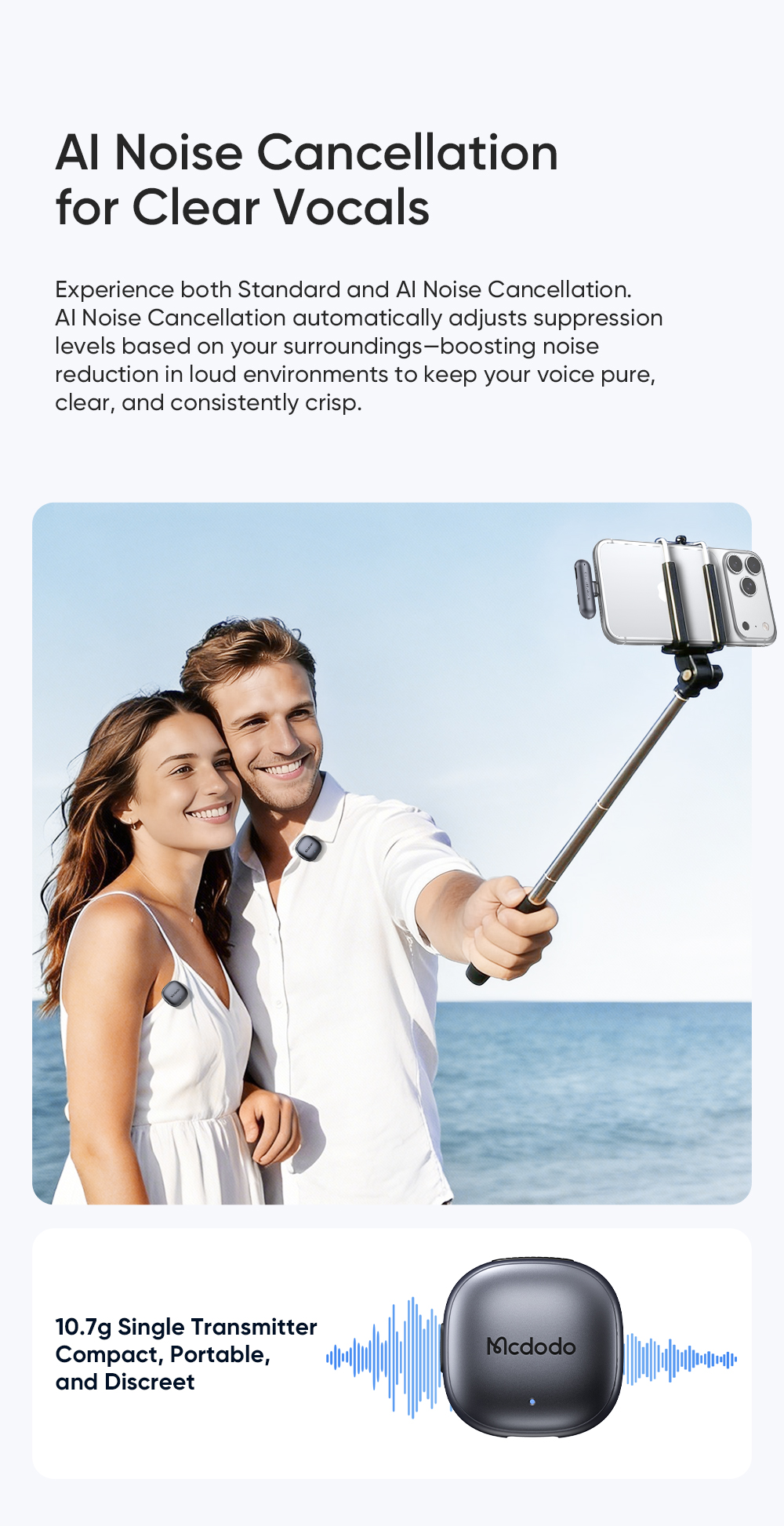 Tính năng Micro Không Dây MCDODO ClearSync series MP-545 (AI Noise-Cancelling, for USB-C&Lightning)
